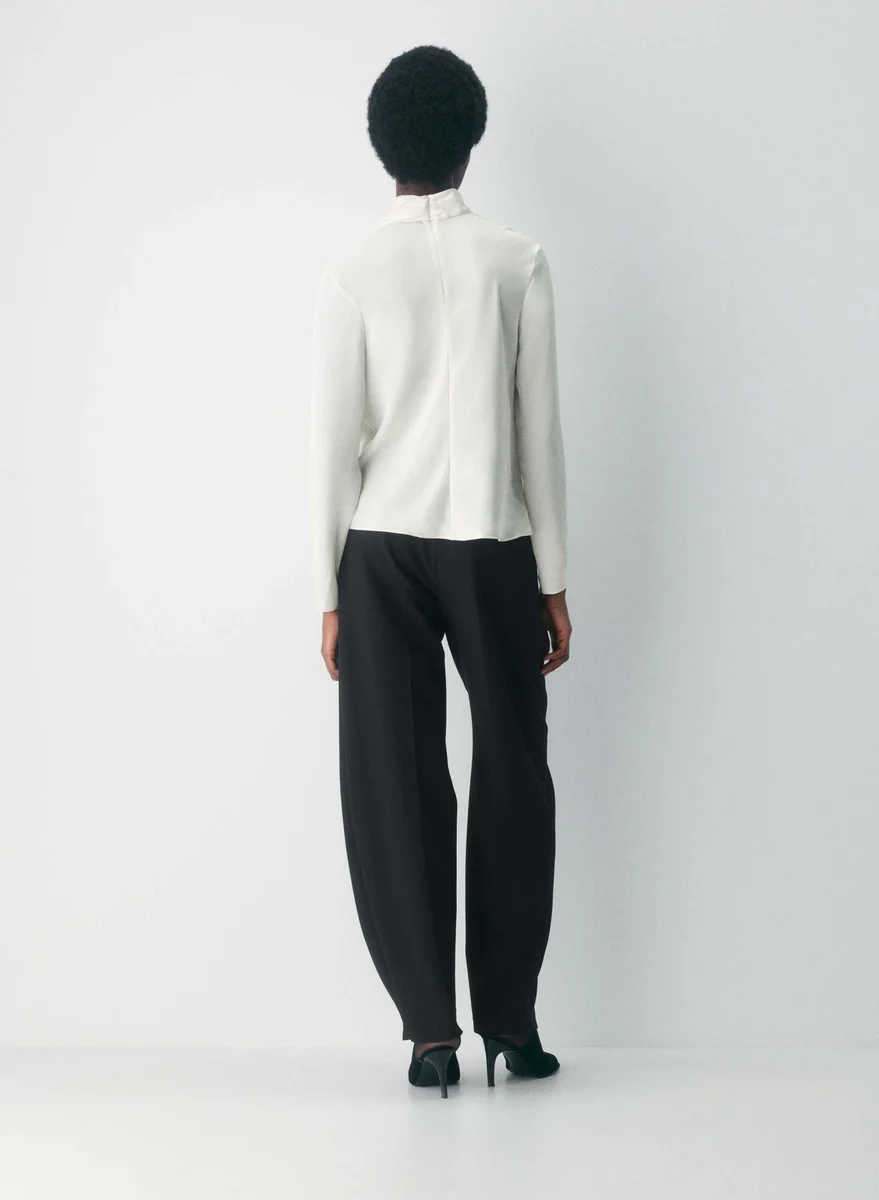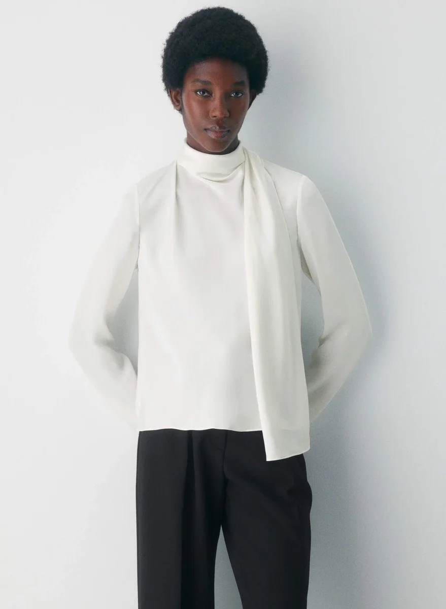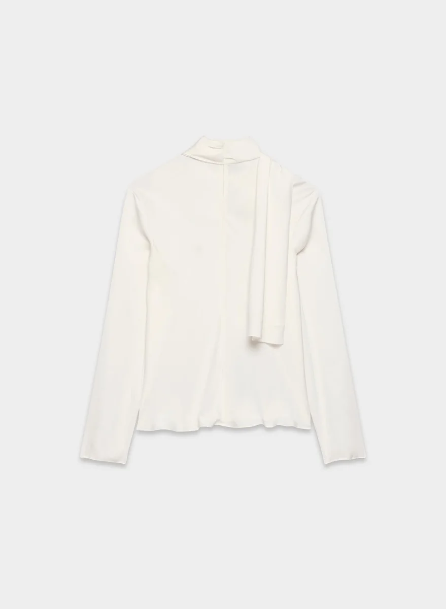 You’re a gallery girlThis is a V-neck blouse with a self-tie detail at the neck. It’s cut from drapey Japanese double-faced satin with a soft sheen and luxurious next-to-skin feel.