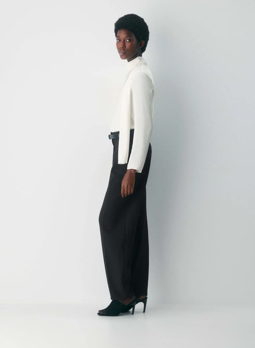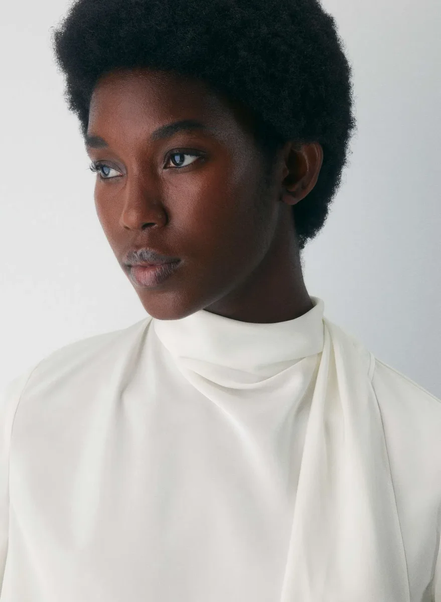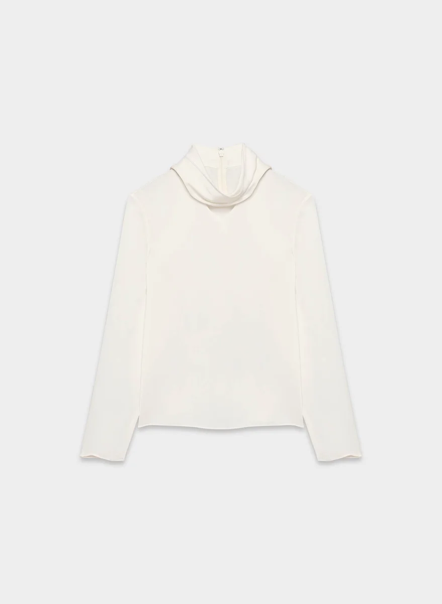 You’re a gallery girlThis is a V-neck blouse with a self-tie detail at the neck. It’s cut from drapey Japanese double-faced satin with a soft sheen and luxurious next-to-skin feel.