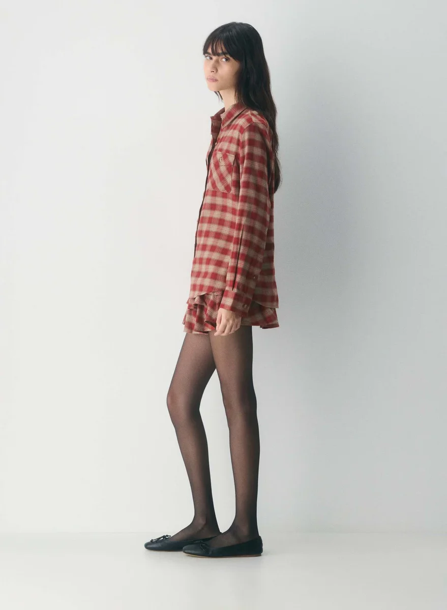 You know when sap season isThis is a button-up shirt with patch pockets at the chest. It’s crafted from drapey, brushed flannel with a soft, cozy feel. This