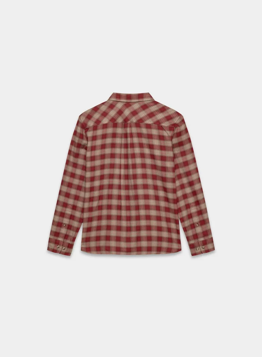 This is a button-up shirt with patch pockets at the chest. It’s crafted from drapey, brushed flannel with a soft, cozy feel. This fabric is made with 23% LENZING™ ECOVERO™ Viscose and 22% TENCEL™ Lyocell.