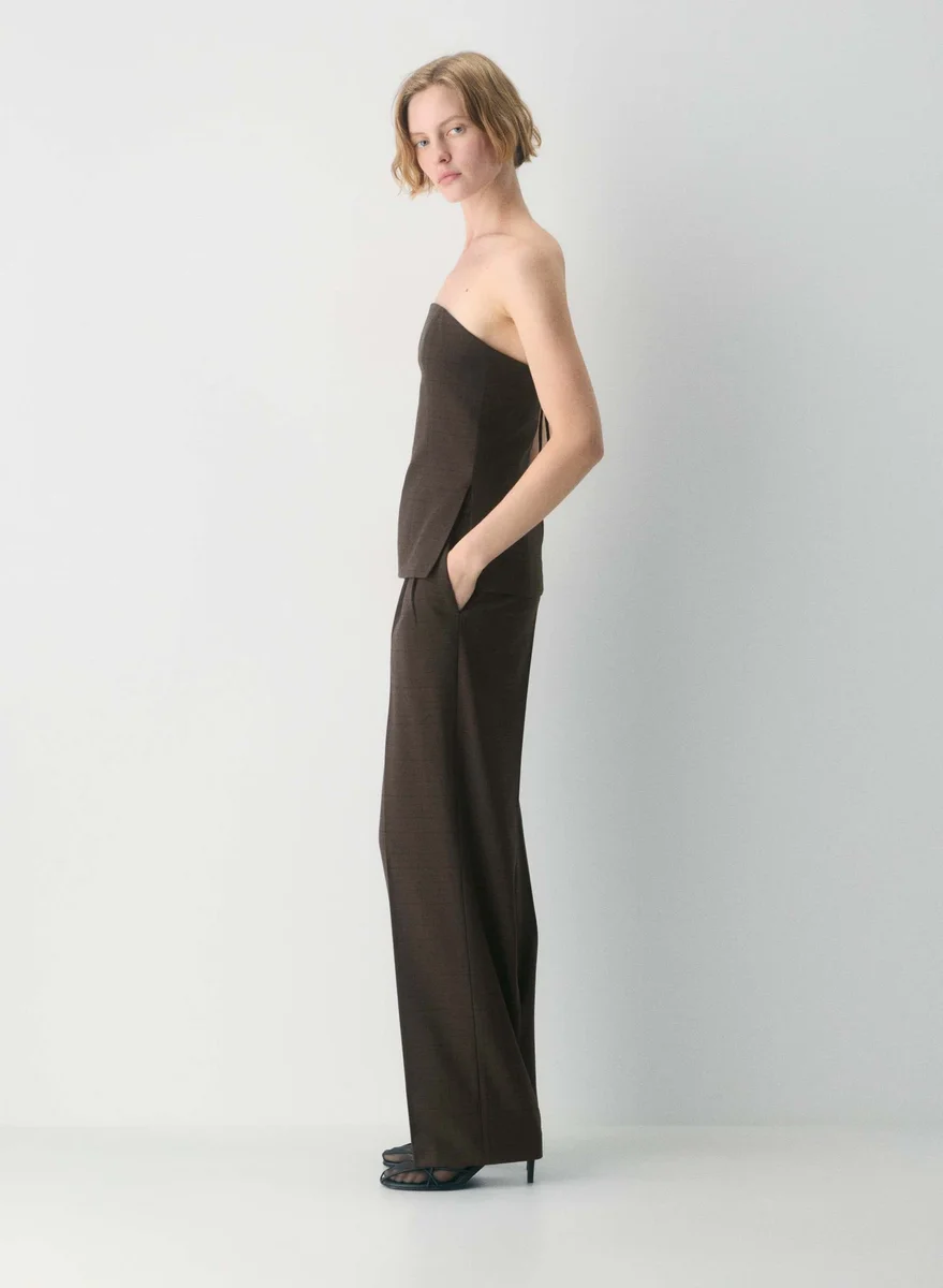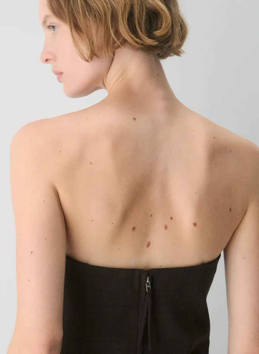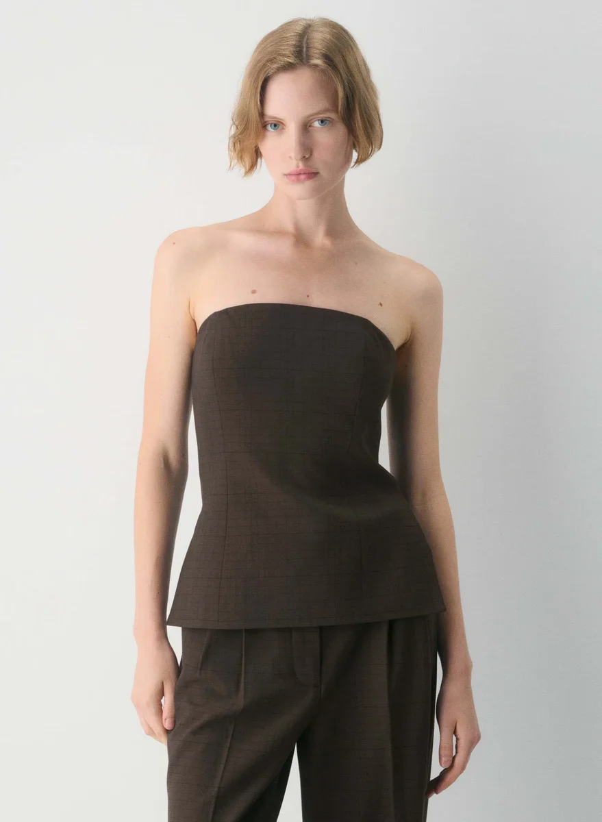This is a strapless top with side slits and princess seams for shaping. It’s made with softly structured twill fabric that has a brushed-back, ultra-soft feel and the perfect amount of stretch.