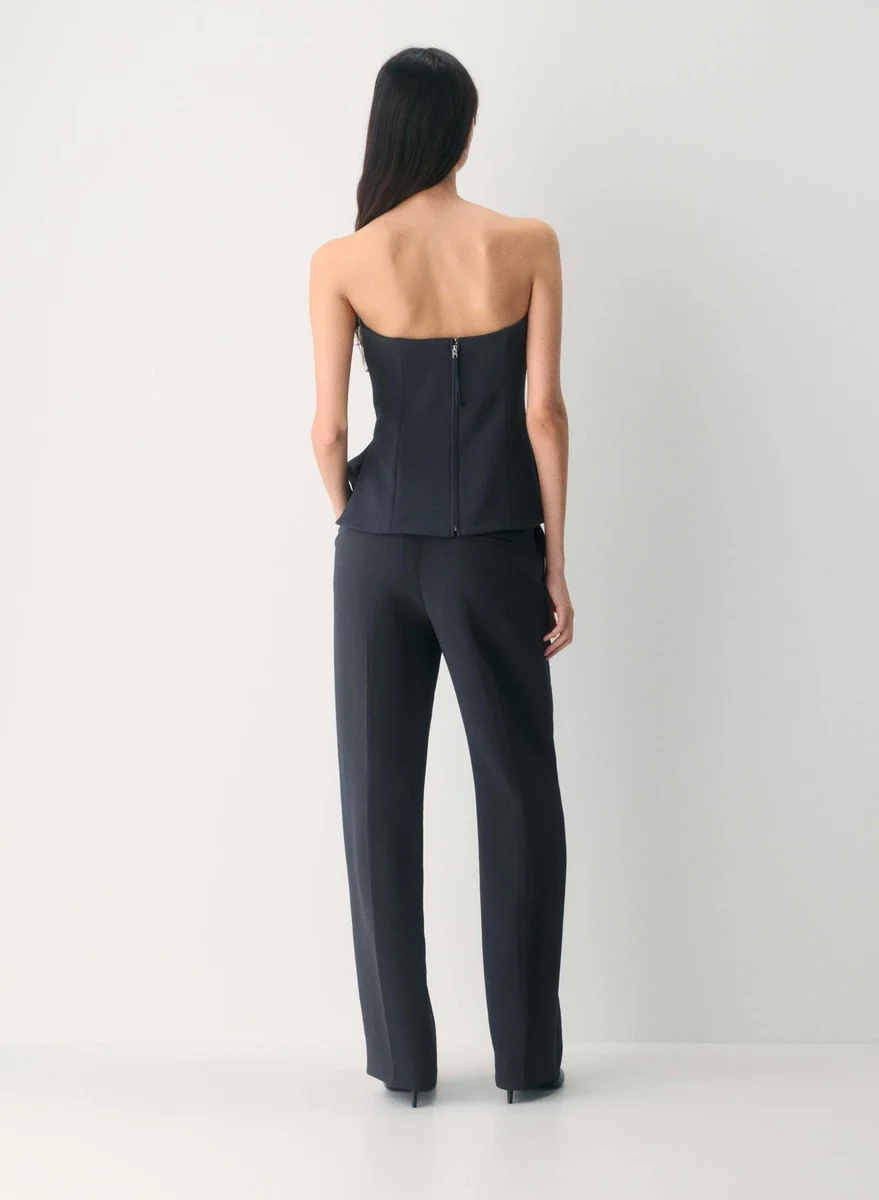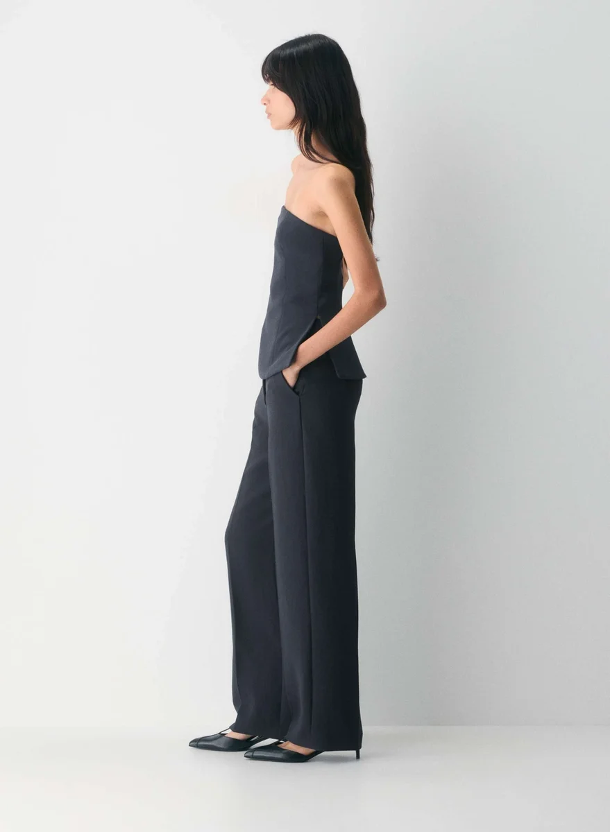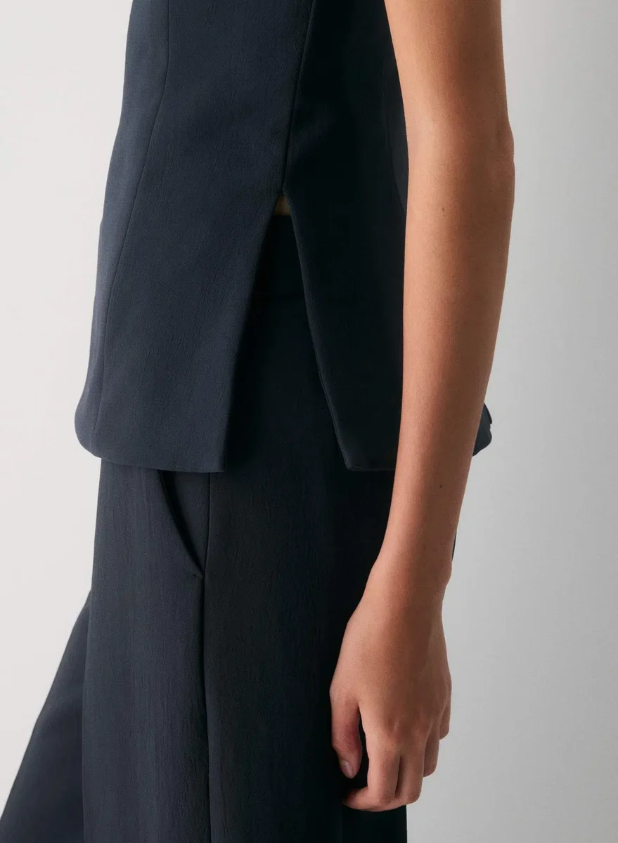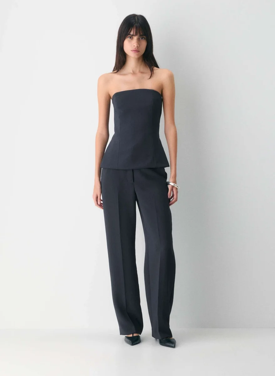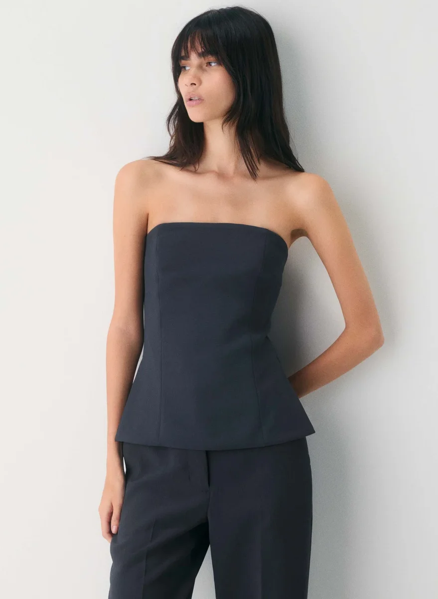 This is a strapless top with side slits and princess seams for shaping. It’s made with Crepette™ — our one-of-a-kind Japanese crepe fabric beloved for its subtle texture, breezy drape and the fact that it basically never wrinkles.