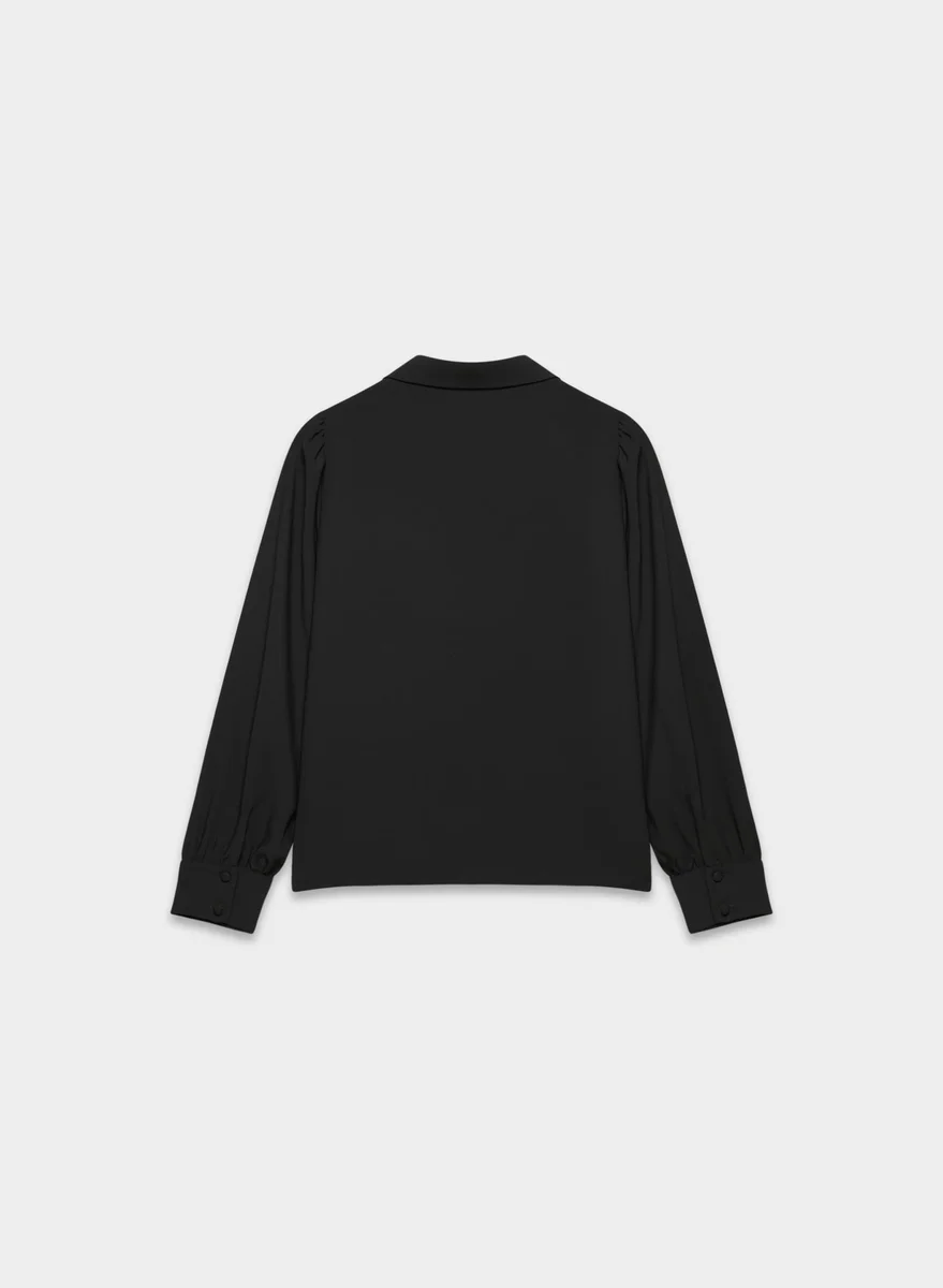 This is a button-up blouse with a notched collar and button-closure cuffs. It’s tailored with (Re)twill™ — breezy, lightweight fabric with a beautifully soft drape. It’s made from 100% recycled polyester.