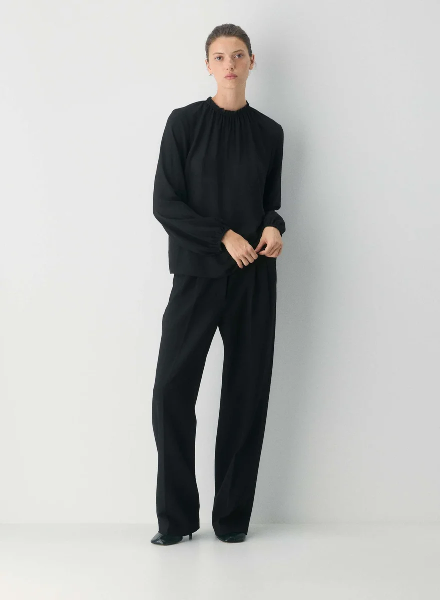 Chiffon blouse with ruffled collar