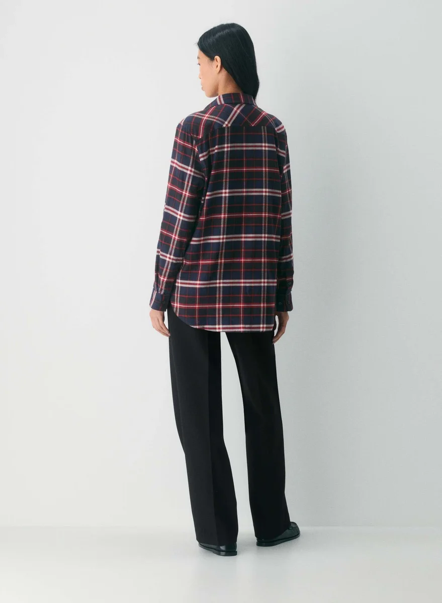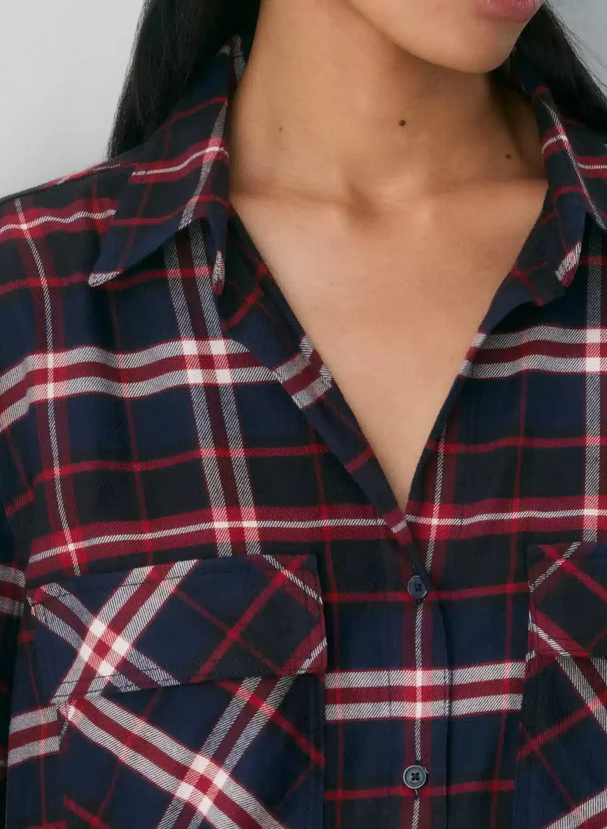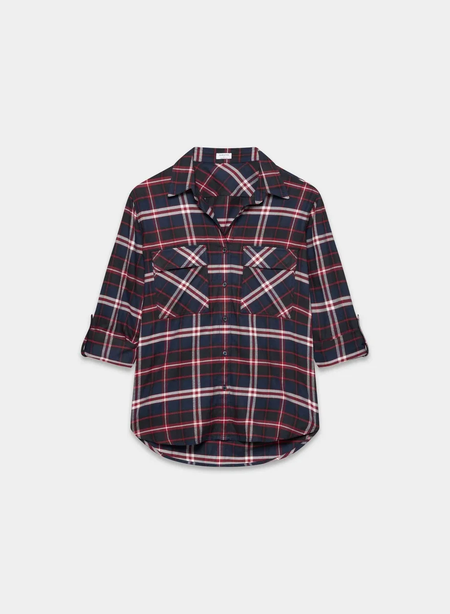 A versatile essential perfected season after season, this is a button-up utility blouse with adjustable sleeves and patch pockets. This version is crafted from drapey, brushed flannel with a soft, cozy feel. This fabric is made with 23% LENZING™ ECOVERO™ Viscose and 22% TENCEL™ Lyocell.