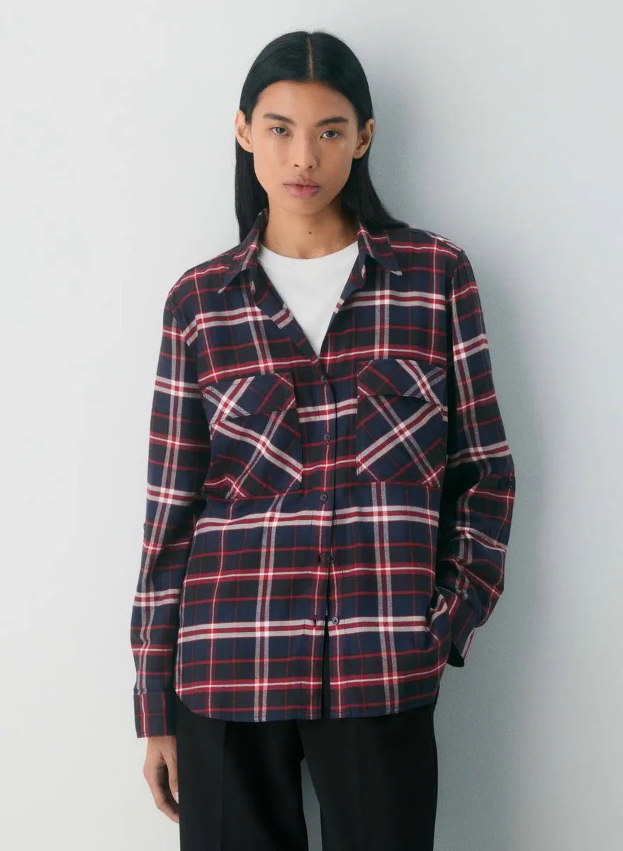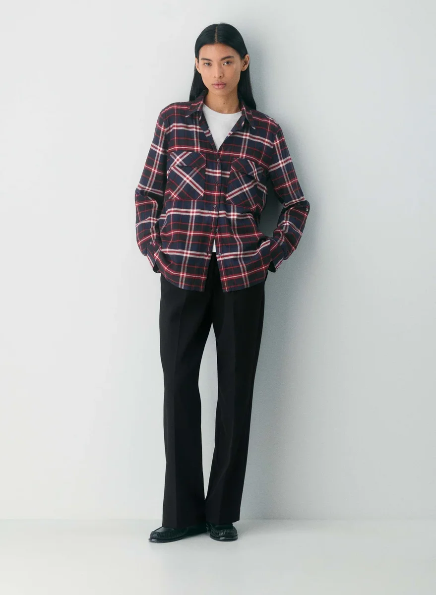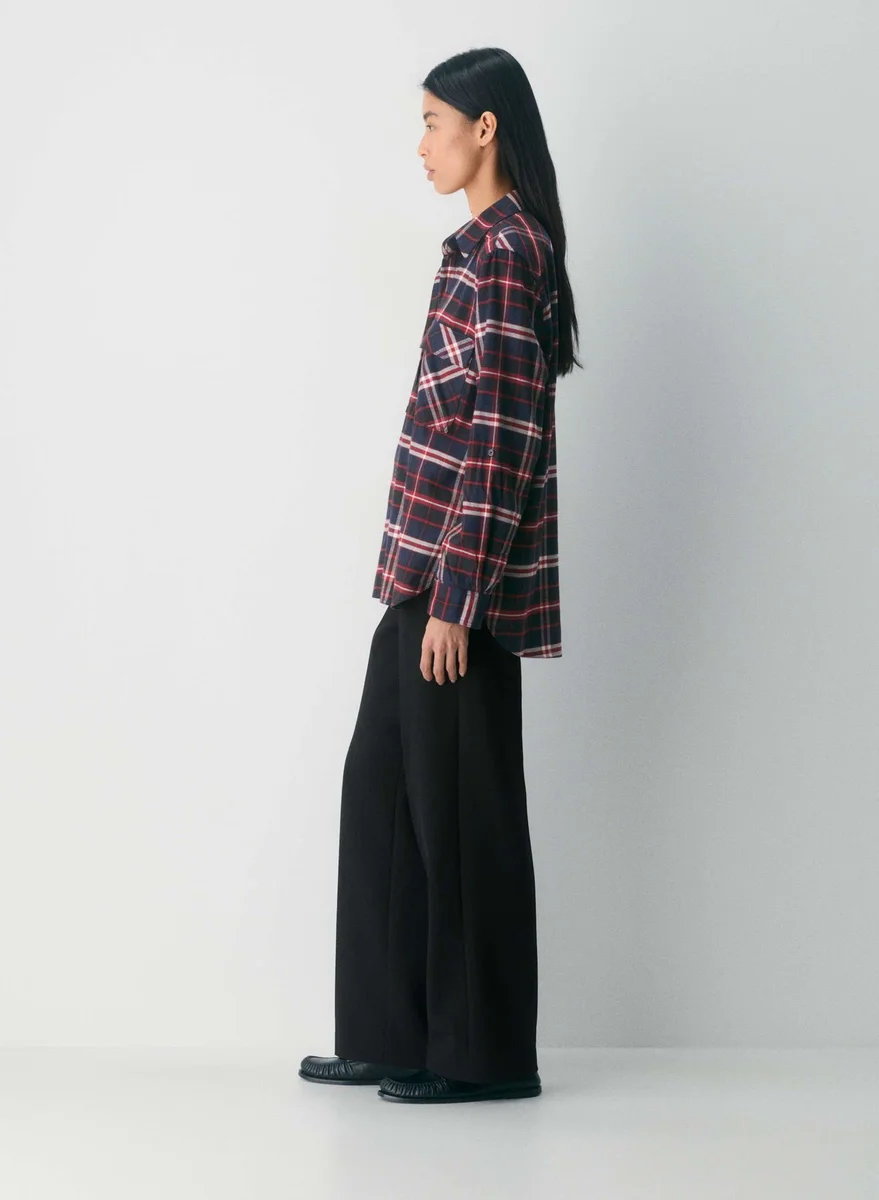 A versatile essential perfected season after season, this is a button-up utility blouse with adjustable sleeves and patch pockets. This version is crafted from drapey, brushed flannel with a soft, cozy feel. This fabric is made with 23% LENZING™ ECOVERO™ Viscose and 22% TENCEL™ Lyocell.