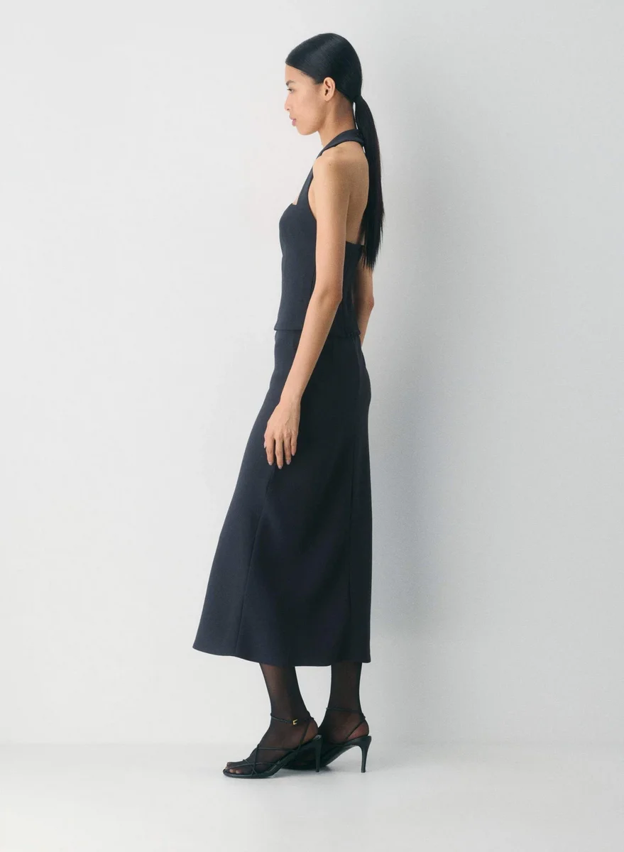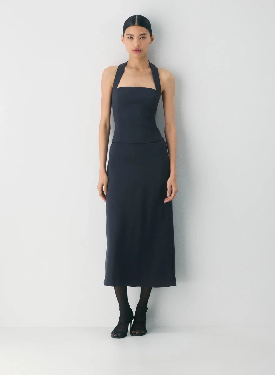 This is a halter bustier top with adjustable straps and a smocked back for a versatile fit. It’s made with Crepette™ — our one-of-a-kind Japanese crepe fabric beloved for its subtle texture, breezy drape and the fact that it basically never wrinkles.