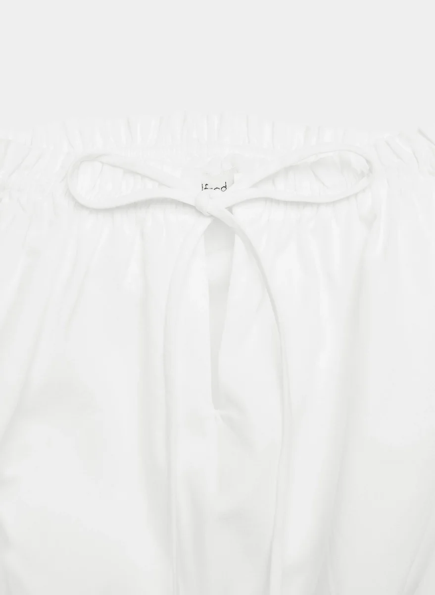 Meet by the main stage?This is an cropped off-the-shoulder blouse with tie details at the cuffs and neckline. It’s made from breathable cotton poplin with a