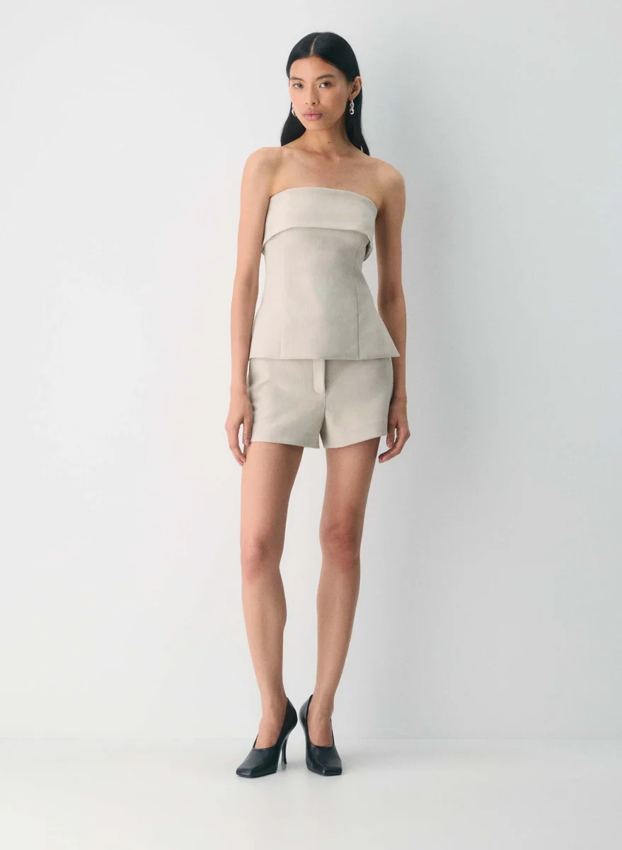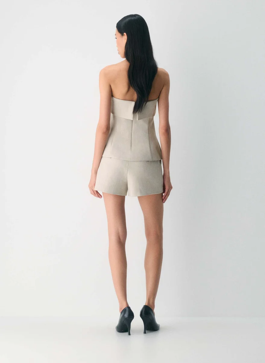 Get that custom-tailored look without the hassle. These are high-waisted shorts with slash hand pockets and a darted back for shaping. They’re cut from softly structured stretch fabric that holds its form while you move easy. It’s sourced from a premier Portuguese mill and made with 26% LENZING™ ECOVERO™ Viscose.