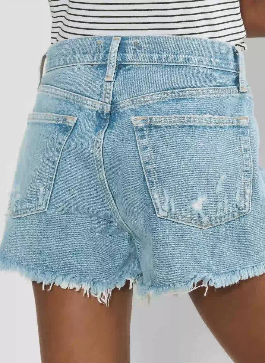 Not too short, not too tightJust right. These are mid-rise denim cut-off shorts designed to look and feel like that perfect vintage find. They’re cut from non-stretch 100% regenerative cotton denim with a washed down look and a smooth, soft finish. This version comes in a light indigo wash with a raw hem.