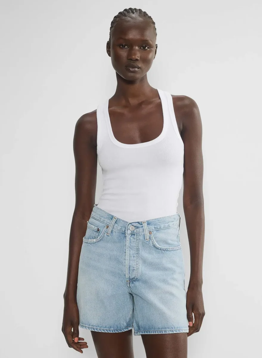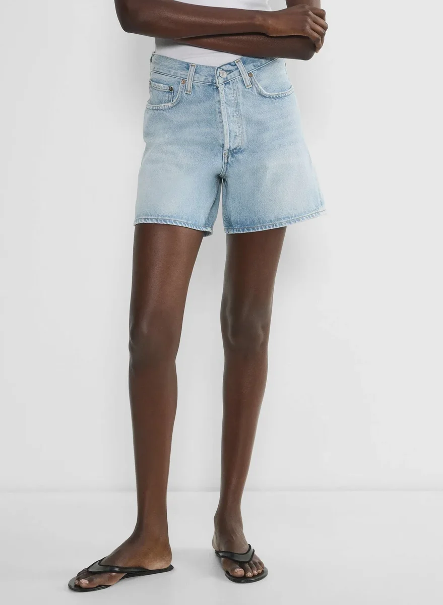 This waistband wants to be differentThese are mid-rise jean shorts with a relaxed fit and sharp V waist. They’re cut from non-stretch regenerative cotton denim