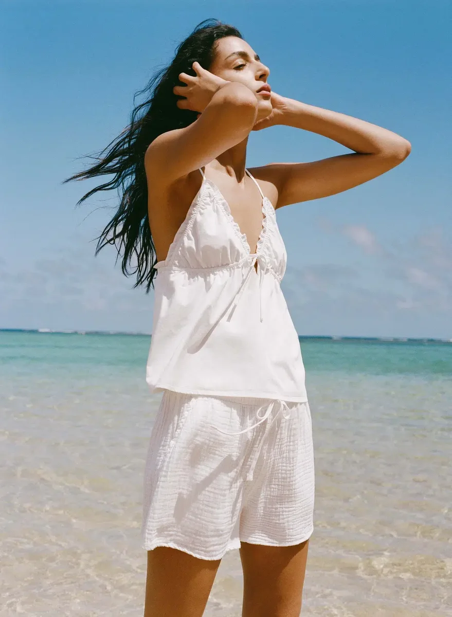 These are mid-rise shorts with a relaxed fit, an elastic waistband and front slash pockets. They’re made from AirPlush Cotton™ — easy-care 100% organic cotton that’s perfect for vacation. This double gauze fabric is made with two layers of soft cotton for an airy, cloud-like feel.