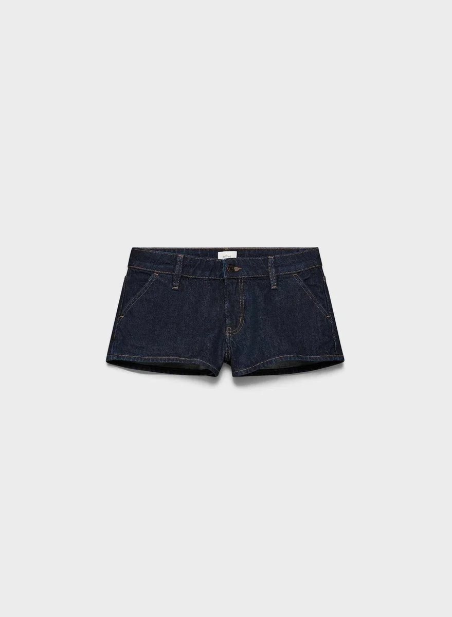 Ultra low-rise non-stretch denim shorts