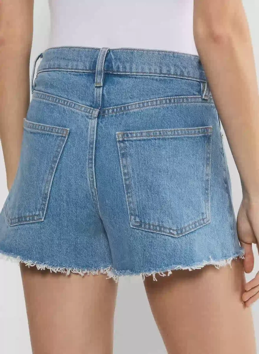 High with a little frayInspired by ’90s ease, these are high-rise, thigh-grazing denim shorts with a classic fit meant to skim your curves just right. They’re cut from ultra-soft cotton denim with a hint of stretch for comfort. These ones come in a no-stress light blue wash with a cut-off hem.