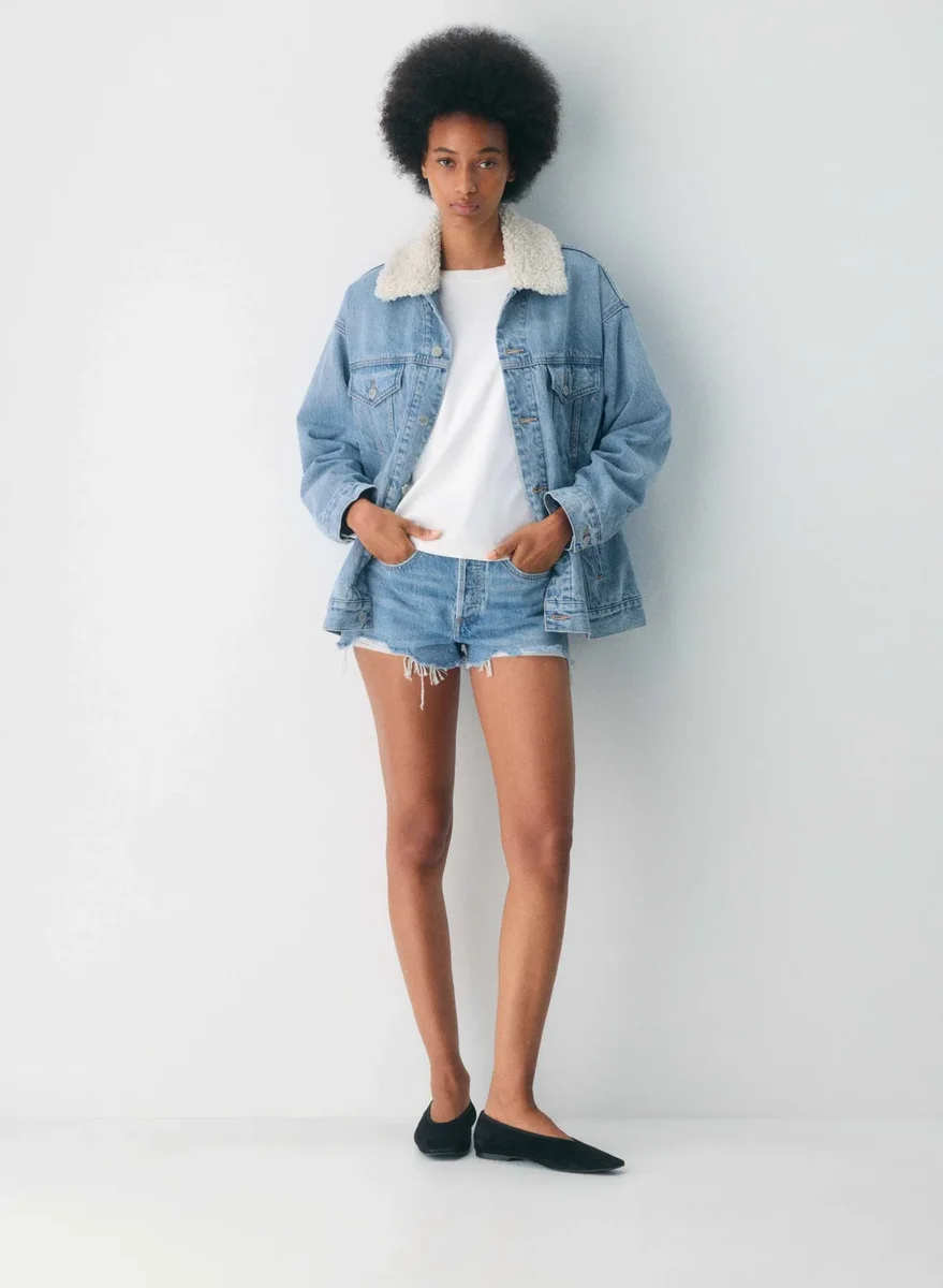 Non-stretch high-rise cut-off shorts made with 100% regenerative cotton