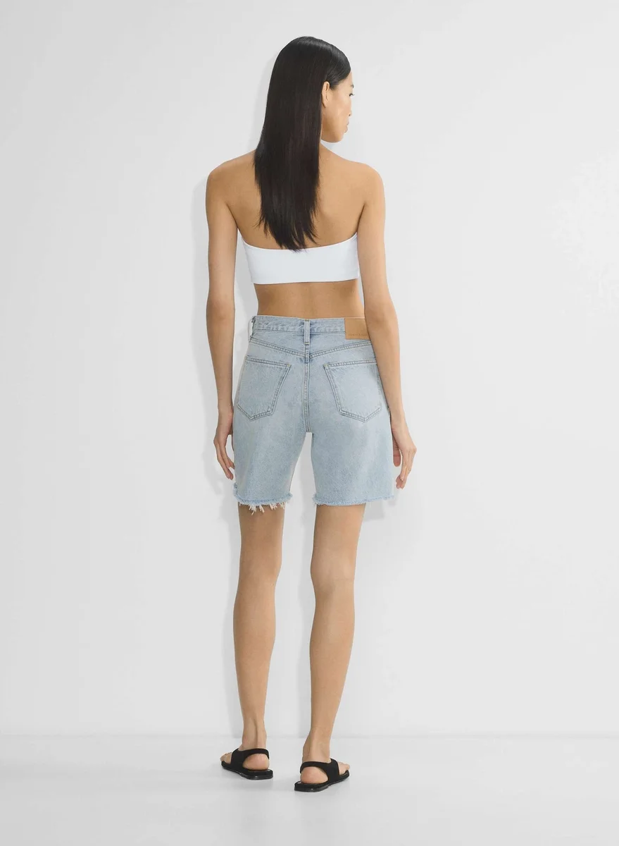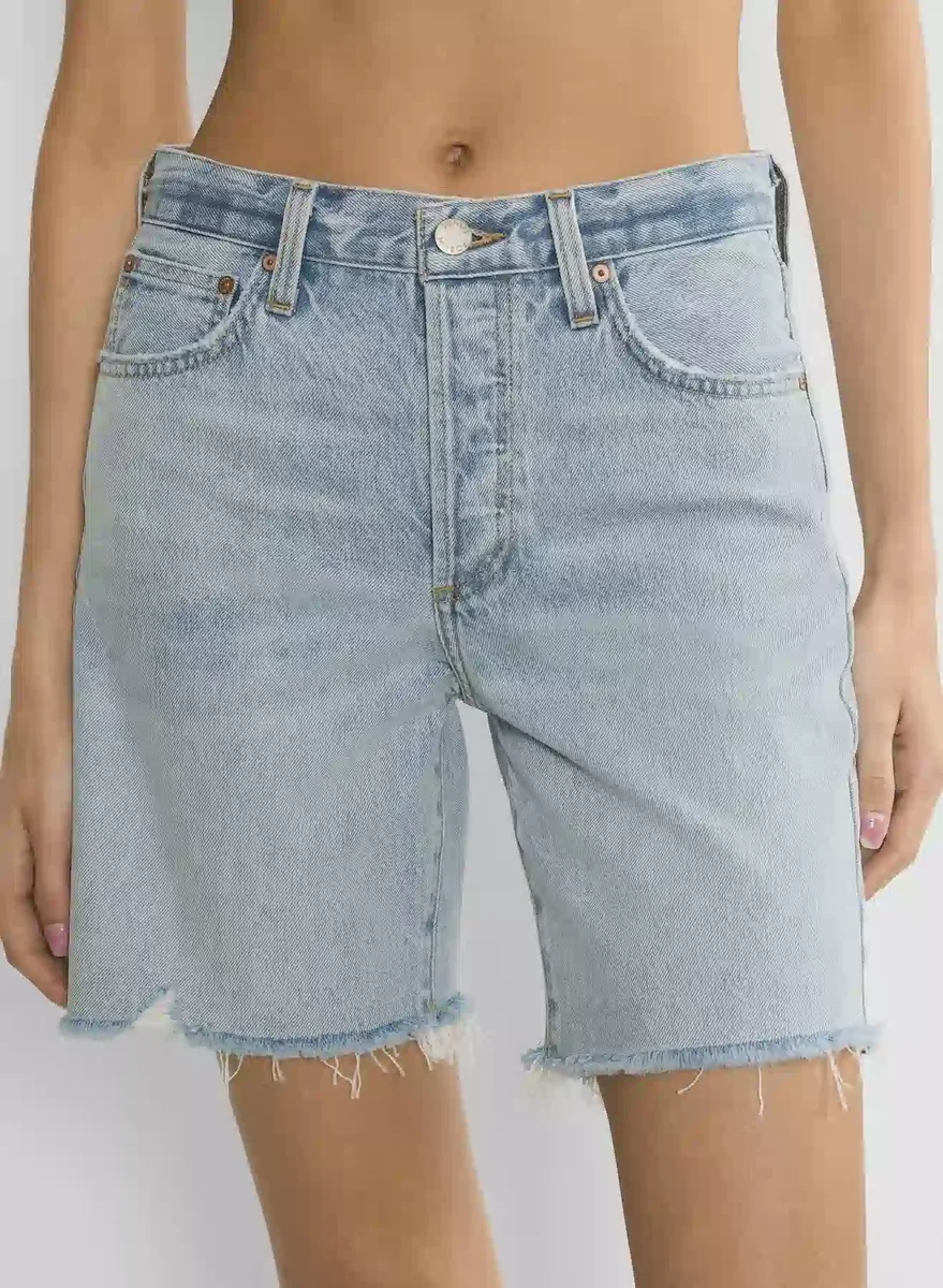 The iconic long vintage shortInspired by the perfect ’90s vintage find, these are long baggy shorts with a high rise. They’re cut from heavyweight, non-stretch denim that molds to your body over time. This fabric is sourced from a premier Italian mill and made with 100% regenagri-certified regenerative cotton. This version comes in a light indigo wash with a frayed hem.