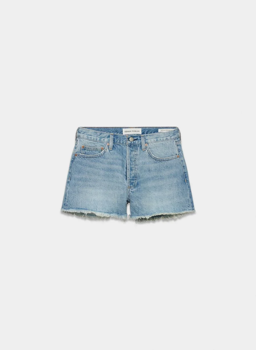 Inspired by the ones you’ve cut loose, The Ex Boyfriend is Denim Forum’s signature relaxed cut-off. Lovers may come and go, but these jean shorts are forever — heavyweight, non-stretch denim molds to your body over time. This fabric is sourced from a premier Italian mill and made with 100% regenagri-certified regenerative cotton. This version comes in a light-medium indigo wash with a frayed hem.