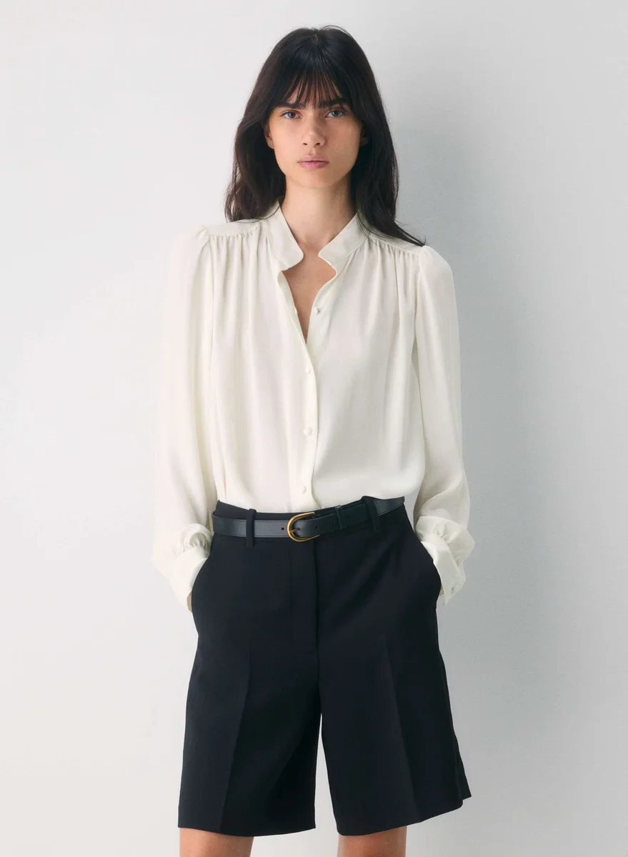 These are high-rise shorts with a classic fit and flat front. They’re made with Crepette™ — our one-of-a-kind Japanese crepe fabric beloved for its subtle texture, breezy drape and the fact that it basically never wrinkles.