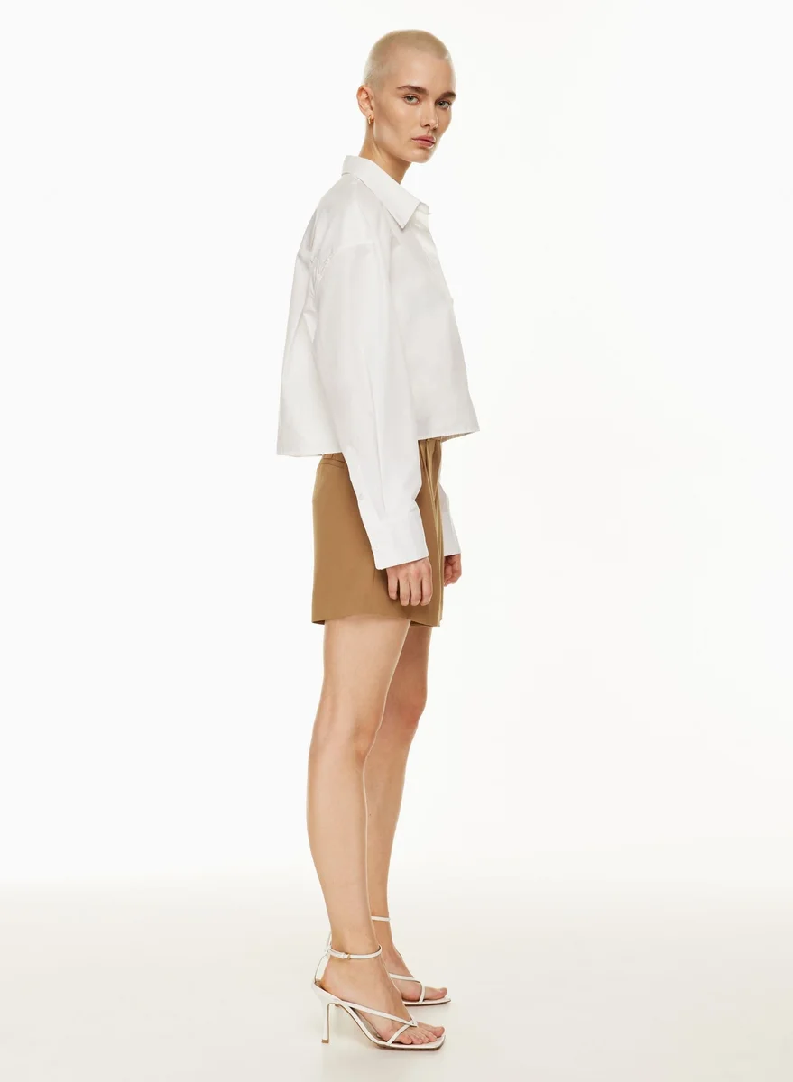These are high-rise pleated shorts with a relaxed fit and darted back waist. They’re finely tailored with Mirror Crepe™ — essential crepe fabric with a soft drape and silky satin back. It’s sourced from an innovative Japanese mill and made with wood-based fibres from responsibly managed forests with a focus on protecting ecosystems.