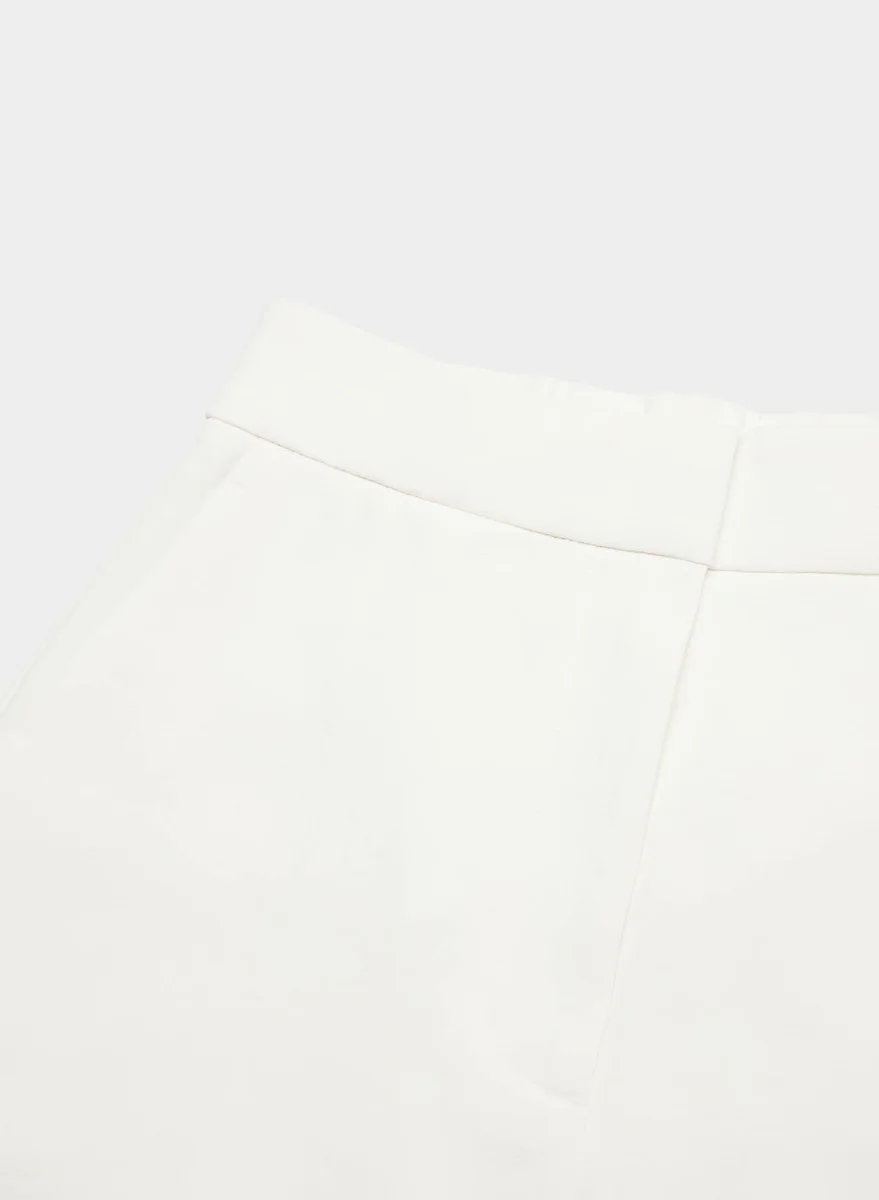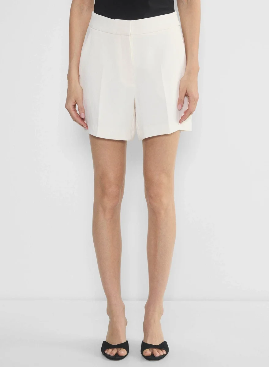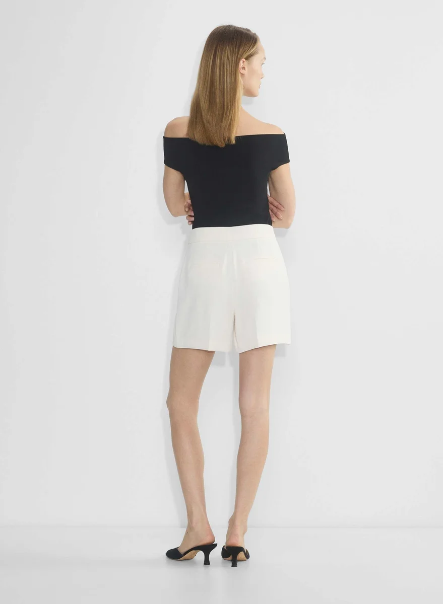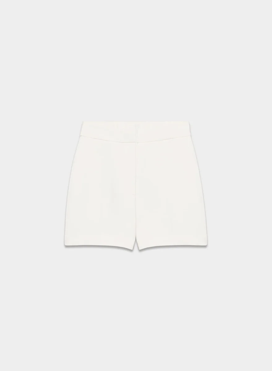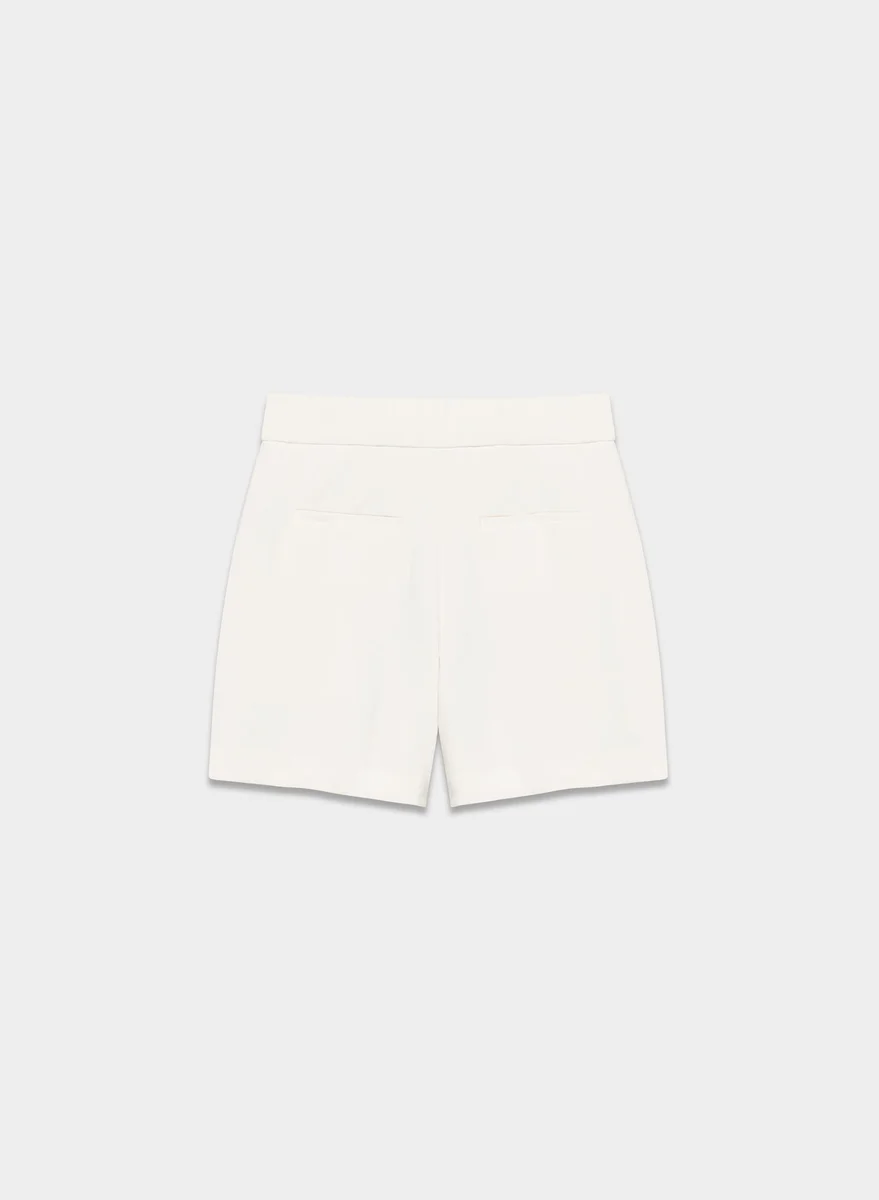 High-rise mid-thigh Japanese crepe shorts with an elastic back waist