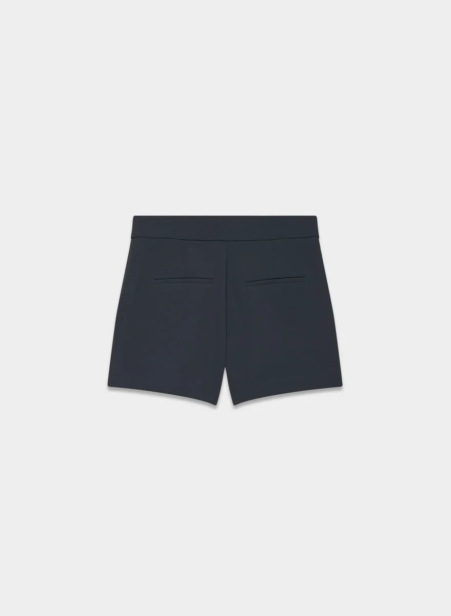High-rise Japanese crepe mini shorts with an elastic back waist