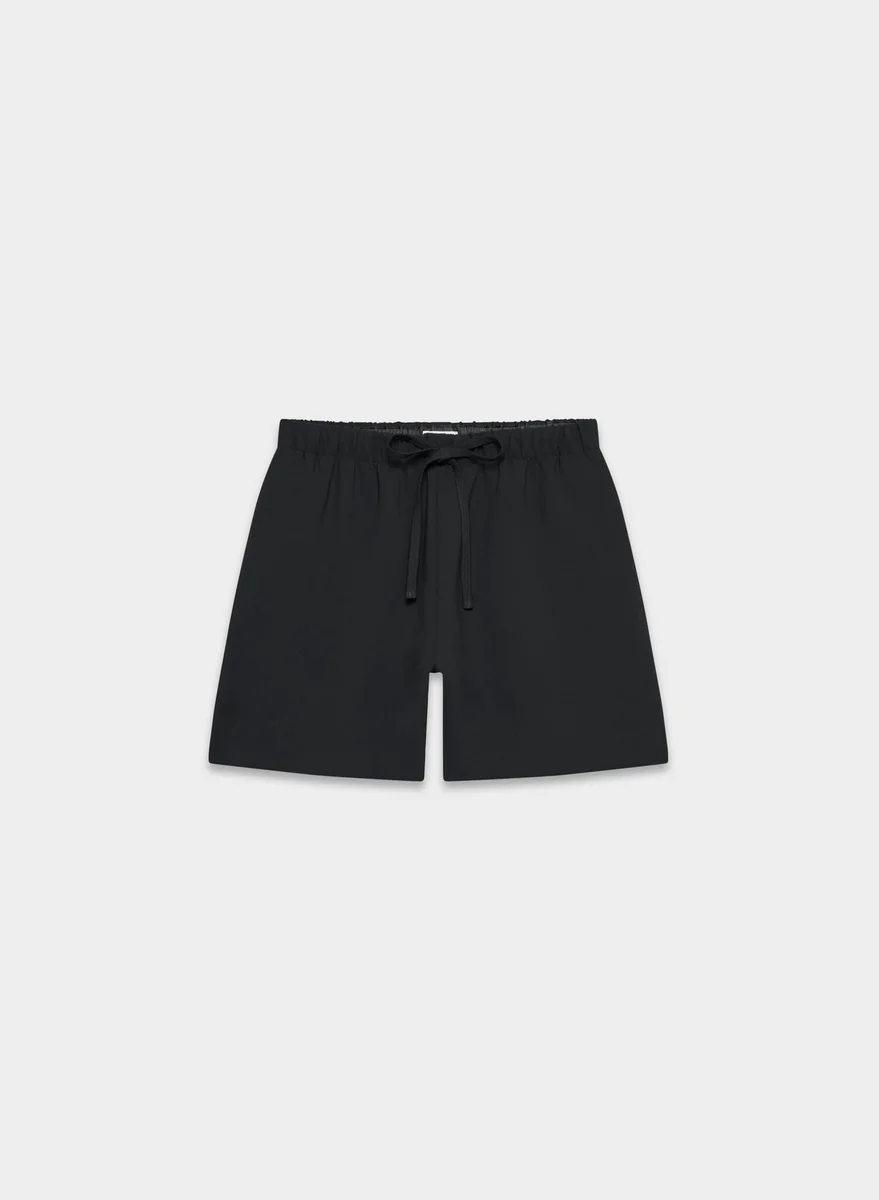 These are wide-leg shorts with a high rise and relaxed fit. They’re made with Crepette™ — our one-of-a-kind Japanese crepe fabric beloved for its subtle texture, breezy drape and the fact that it basically never wrinkles.
