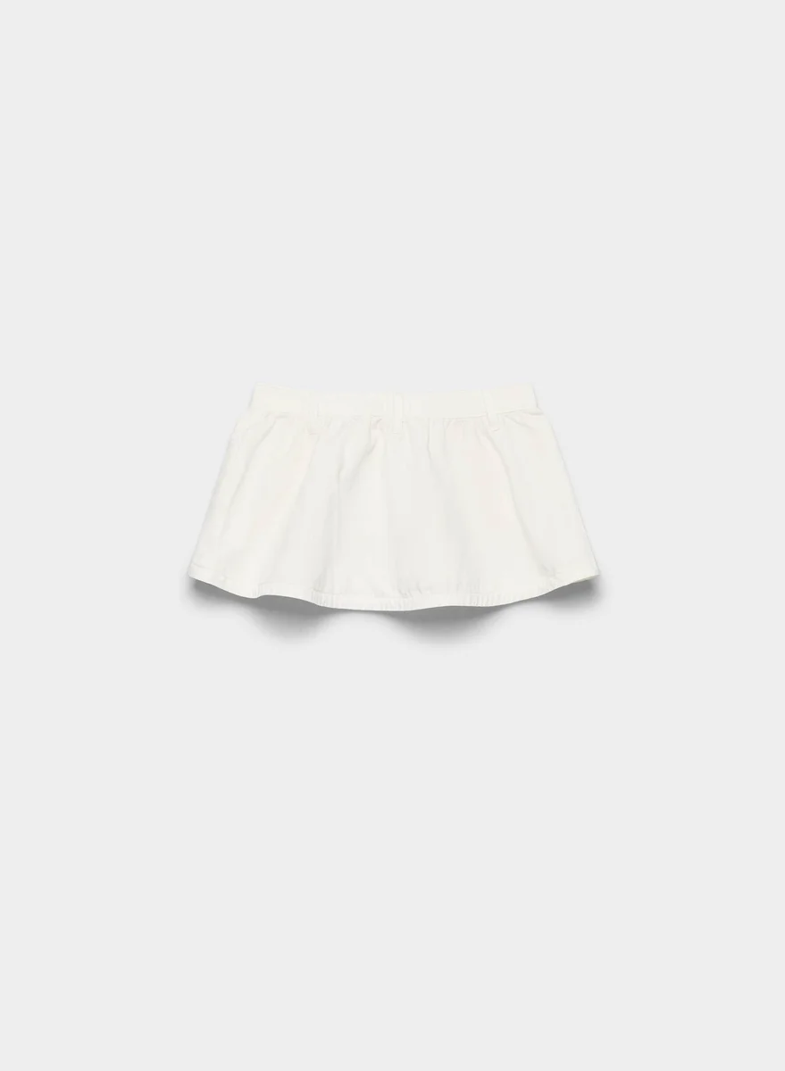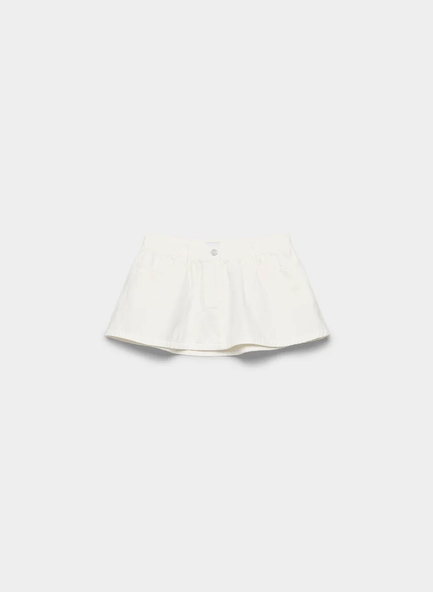This is a super low-rise micro skirt with a gathered waist. It’s made from drapey 100% cotton twill with a soft feel.