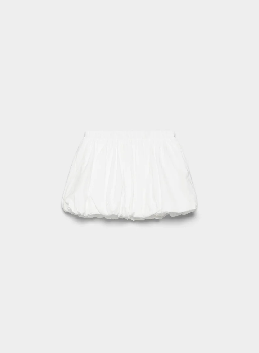 Your second favourite type of bubblyThis is a low-rise mini bubble skirt with an elastic waist. It’s made with lightweight 100% cotton poplin with a crisp and airy feel.