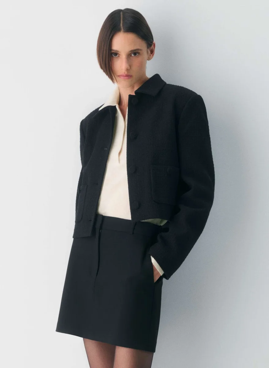 This is a high-rise mini pencil skirt with trouser-like detailing and a darted back waist for shaping. It’s finely tailored with (Re)ssential — softly structured stretch fabric that holds its form while you move easy. This fabric is sourced from a premier Portuguese mill and made with 54% recycled polyester and 26% LENZING™ ECOVERO™ Viscose.