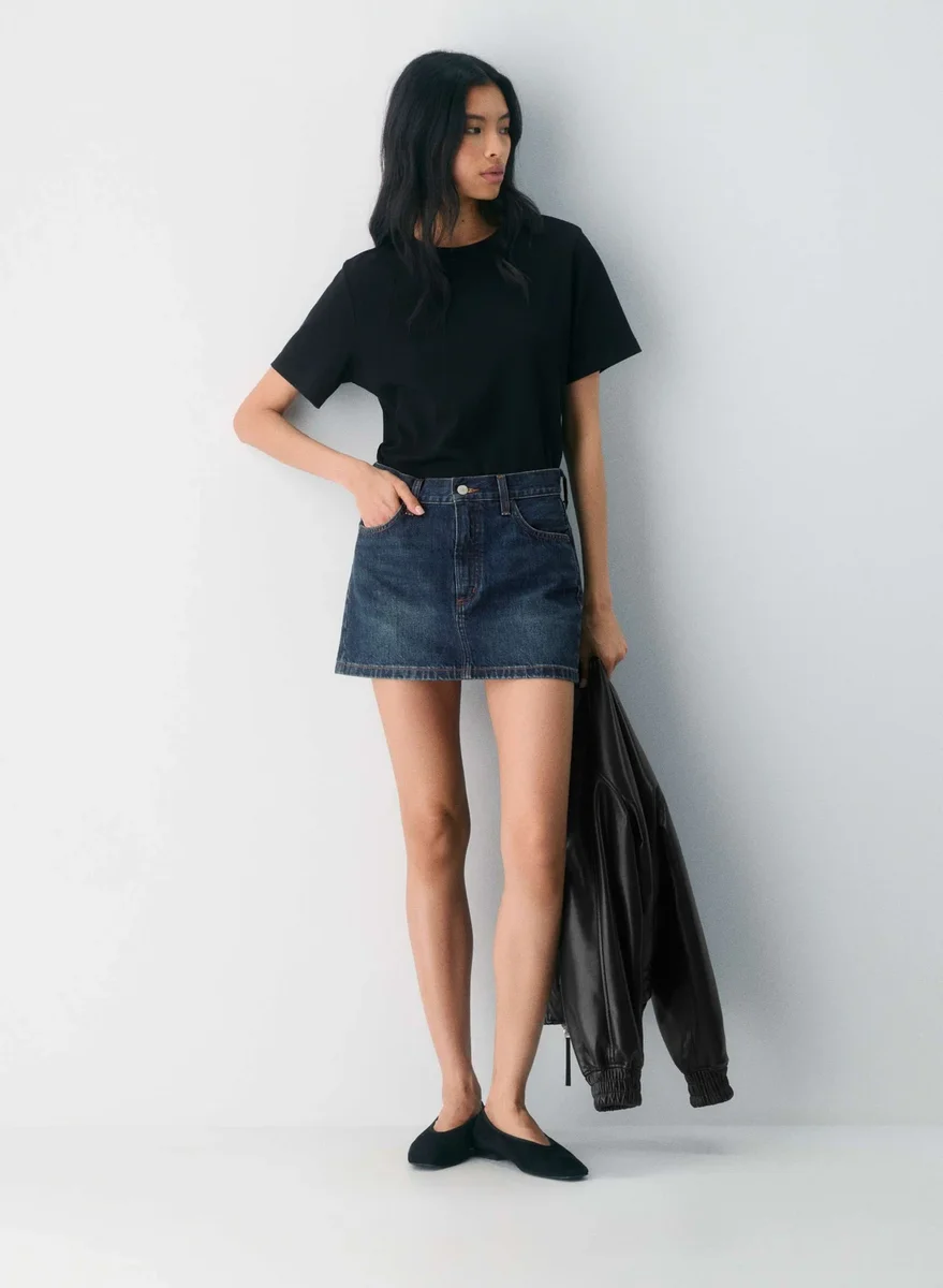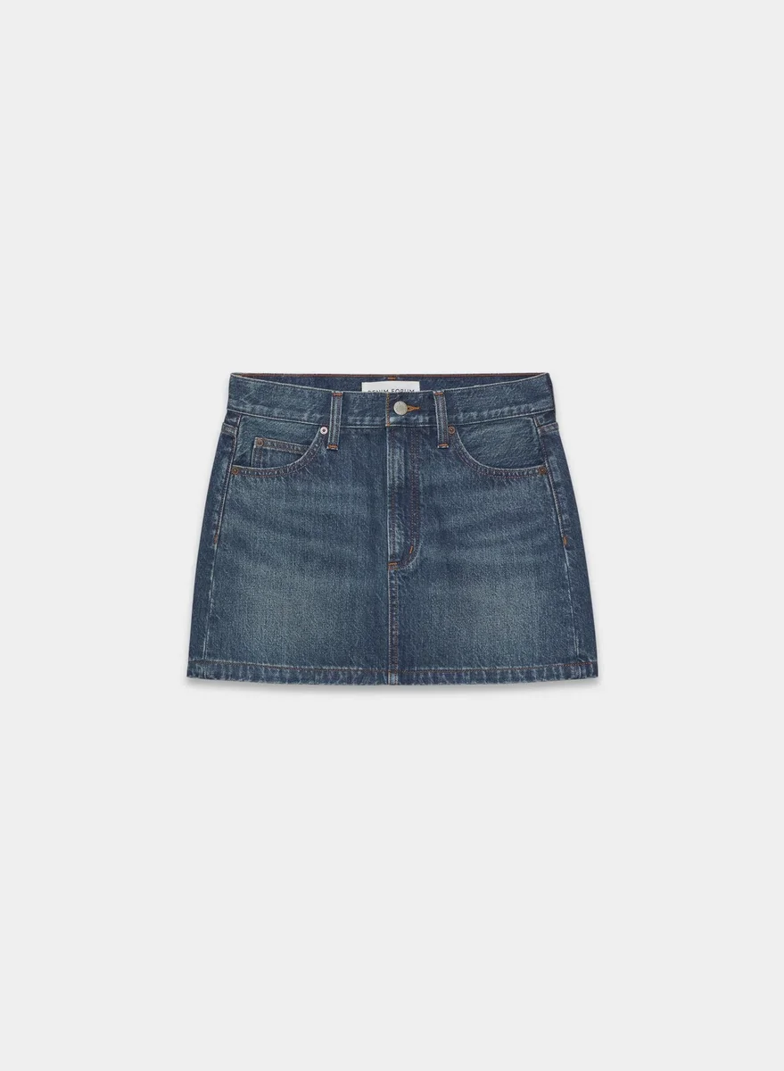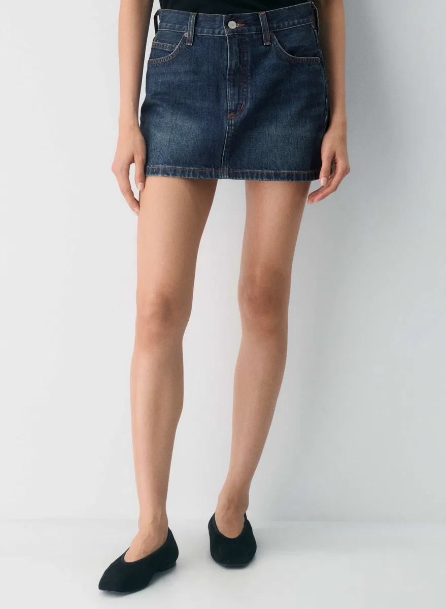 The middy miniInspired by the iconic spirit of the decade, The ’90s Ricci features a classic mid rise and thigh-grazing hemline. It’s made with heavyweight, non-stretch denim that molds to your body over time. This fabric is sourced from a premier Italian mill and made with 100% regenagri-certified regenerative cotton. This version comes in a dark indigo wash with a clean hem.