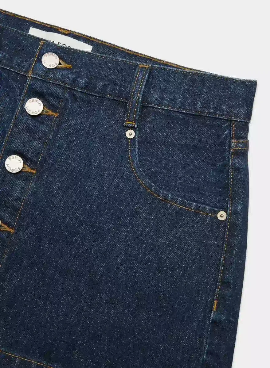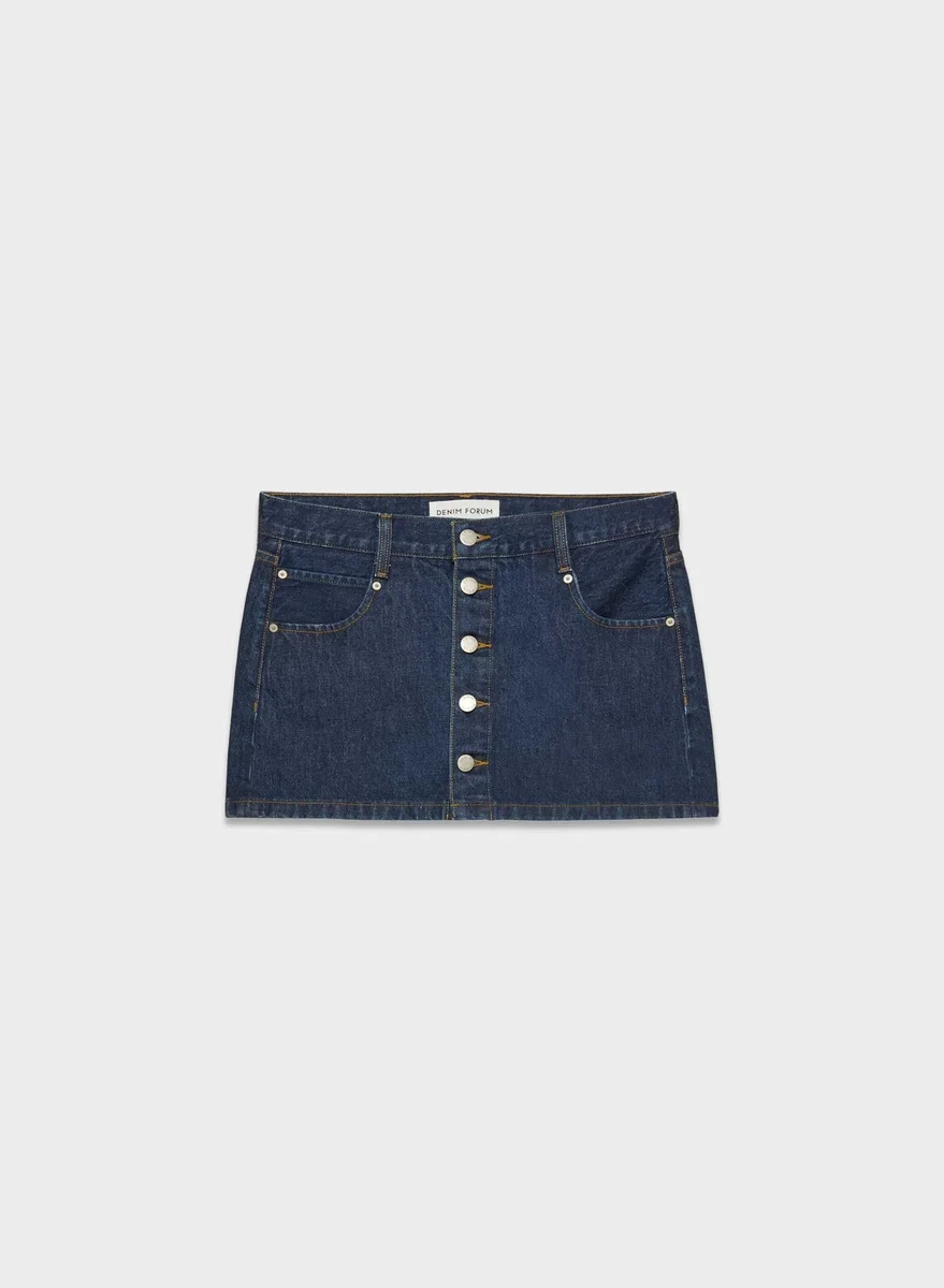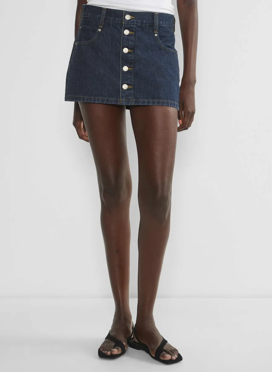 The charming button-up microThis is a classic mid-rise denim micro skirt with buttons up the front. It’s cut from heavyweight, non-stretch denim that molds to your body over time. This fabric is sourced from a premier Italian mill and made with 100% regenagri-certified regenerative cotton. This version comes in a rinsed dark indigo wash with a clean hem.