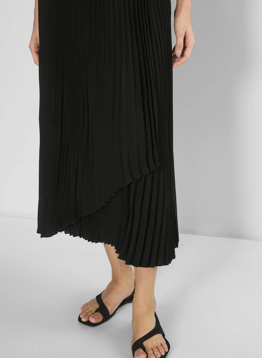 Matte satin pleated maxi skirt