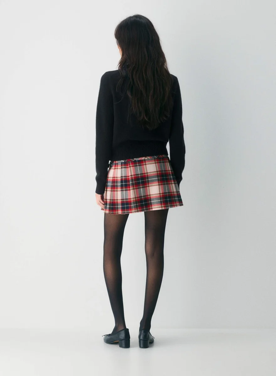 Short and sweetThis is a pleated micro skirt with a super low rise. It’s cut from lightly structured flannel with an ultra-soft feel. This fabric is made with 32% viscose, wood-based fibres sourced from responsibly managed forests with a focus on protecting ecosystems.