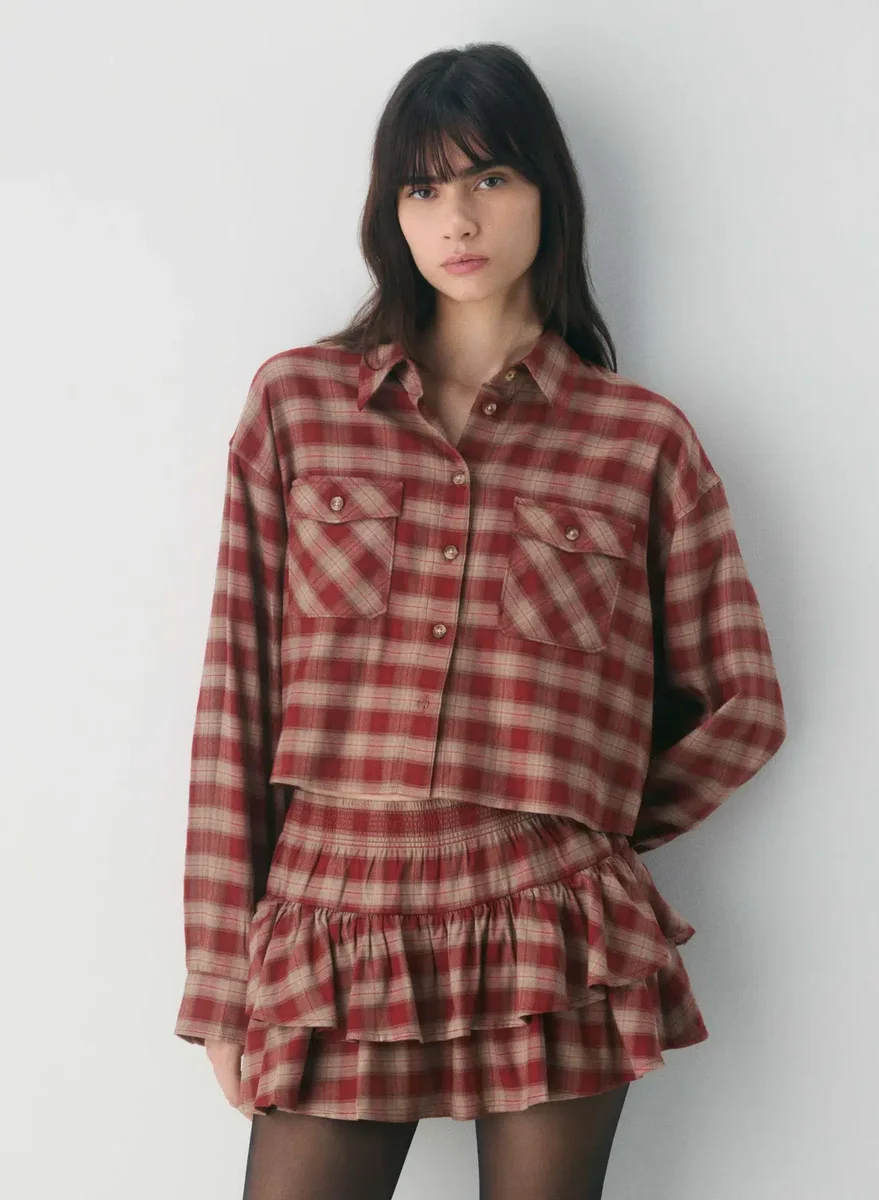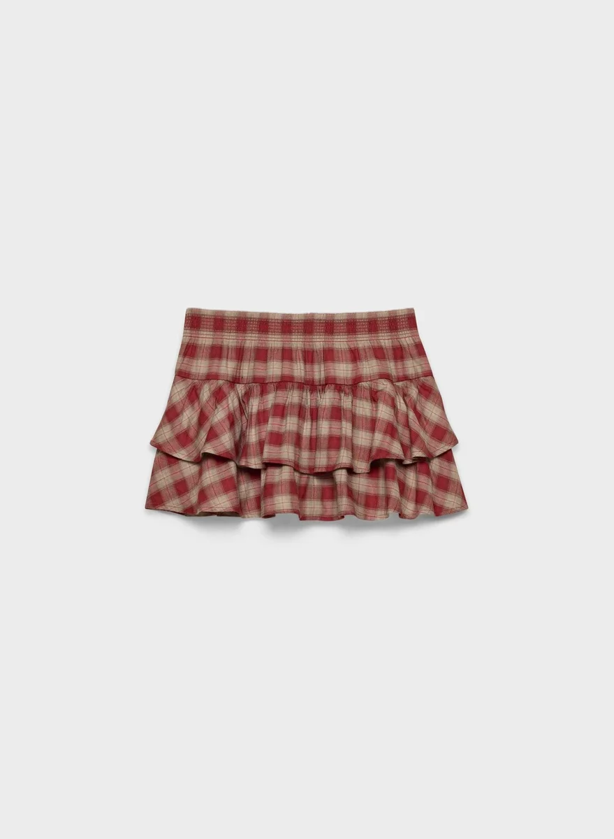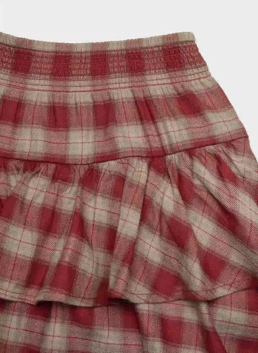 This is a tiered micro skort with a low rise and classic fit. It’s crafted from drapey, brushed flannel with a soft, cozy feel. This fabric is made with 23% LENZING™ ECOVERO™ Viscose and 22% TENCEL™ Lyocell.
