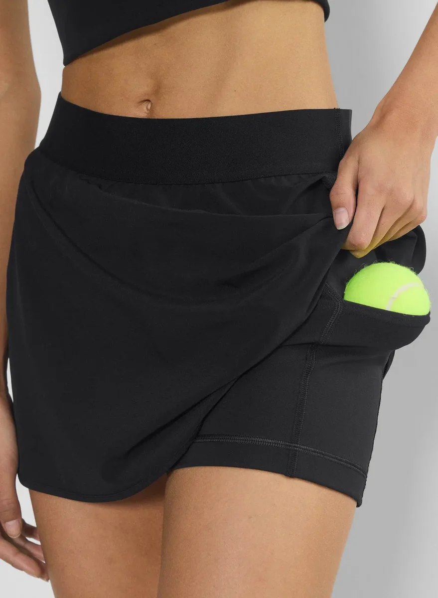 This is a tennis skirt with built-in Power Sculpt™ undershorts and functional Serve Pockets. It’s made from MoveTech™ — lightweight, sweat-wicking fabric with a smooth, cool feel and a natural drape that moves with you. This fabric is made with recycled polyester.