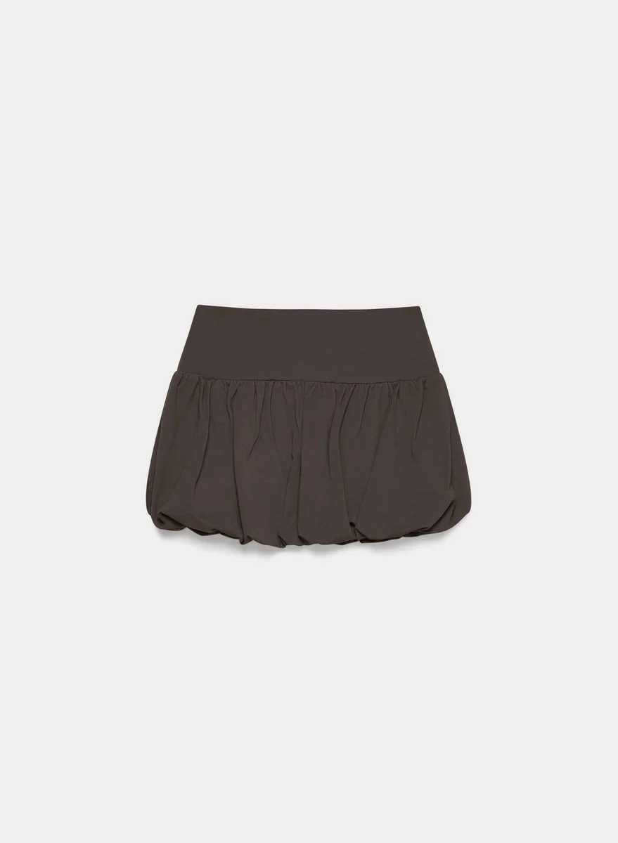 Cupcake-ishThis is a mid-rise bubble skirt with a wide waistband. It’s made with PonteFlex — a luxurious ponte knit with a soft feel and the perfect amount of stretch. This fabric is made with 66% rayon, wood-based fibres sourced from responsibly managed forests with a focus on protecting ecosystems.