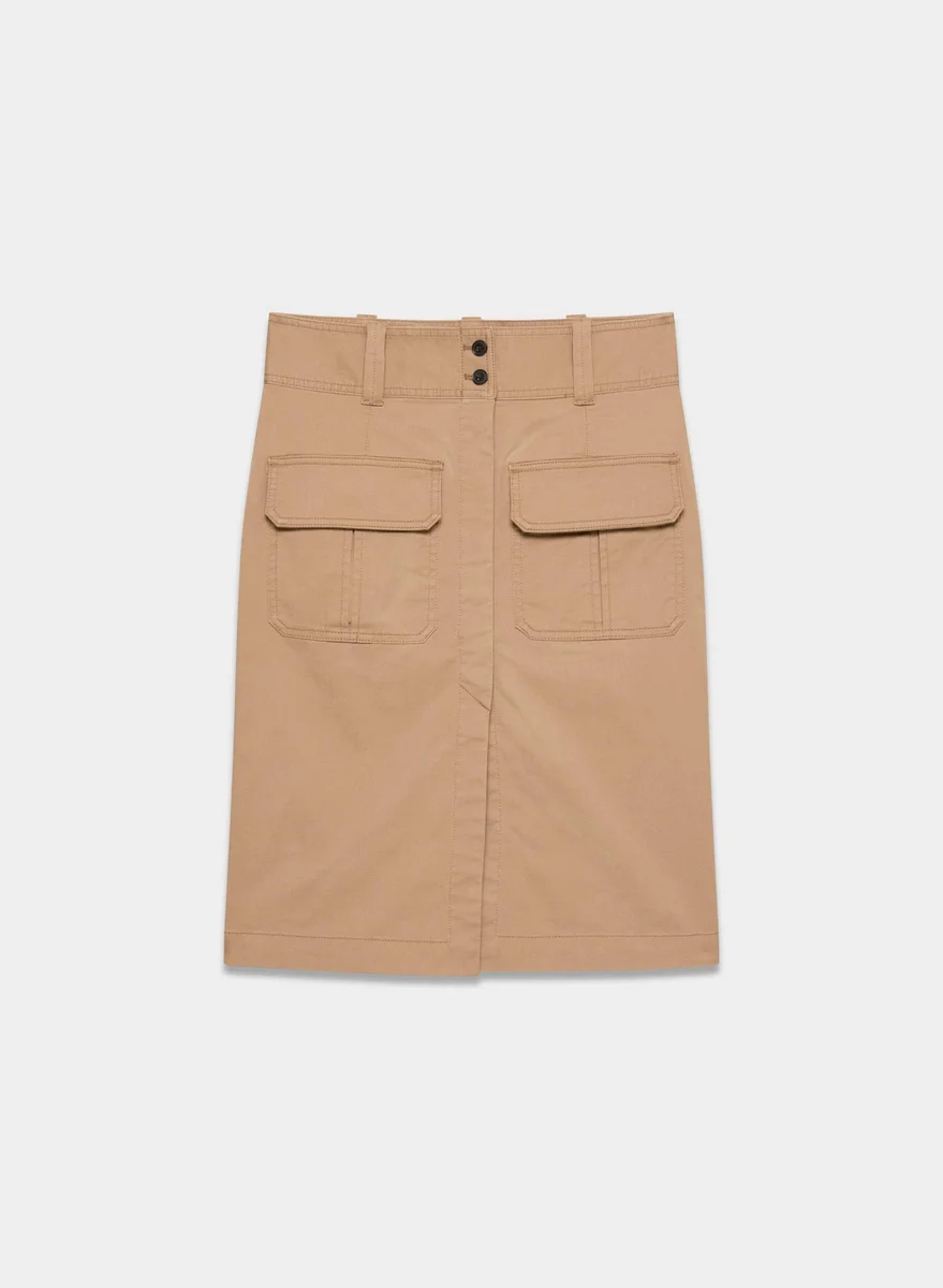 This is a mid-rise cargo skirt with utility pockets and a centre front slit. It’s made with Aritzia’s Chino — stretch cotton twill with a peachy feel. This fabric’s easy-care and perfect for year-round wear. It’s made with 97% regenerative cotton.