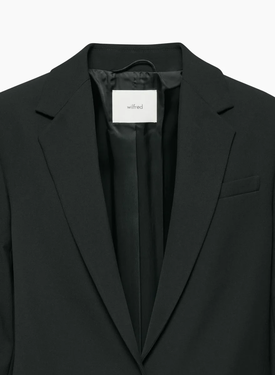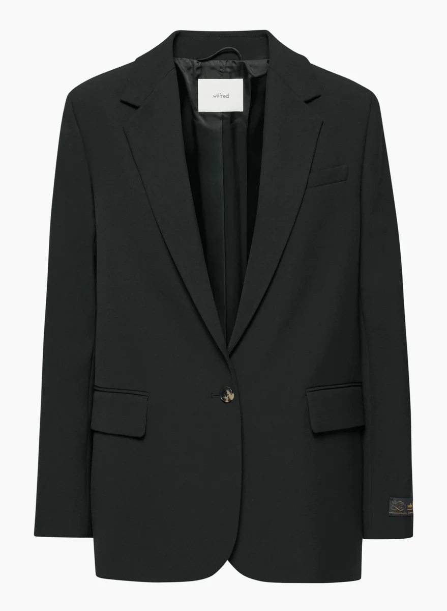 This is a single-breasted blazer with a peaked lapel, shoulder pads and a relaxed fit. It’s tailored with (Re)ssential — softly structured stretch fabric that holds its form while you move easy. This fabric is sourced from a premier Portuguese mill and made with recycled materials and LENZING™ ECOVERO™ Viscose — responsibly sourced wood-based fibres produced through a process that reduces impact on forests, biodiversity and water supply. This style has been recently updated for an even better fit.