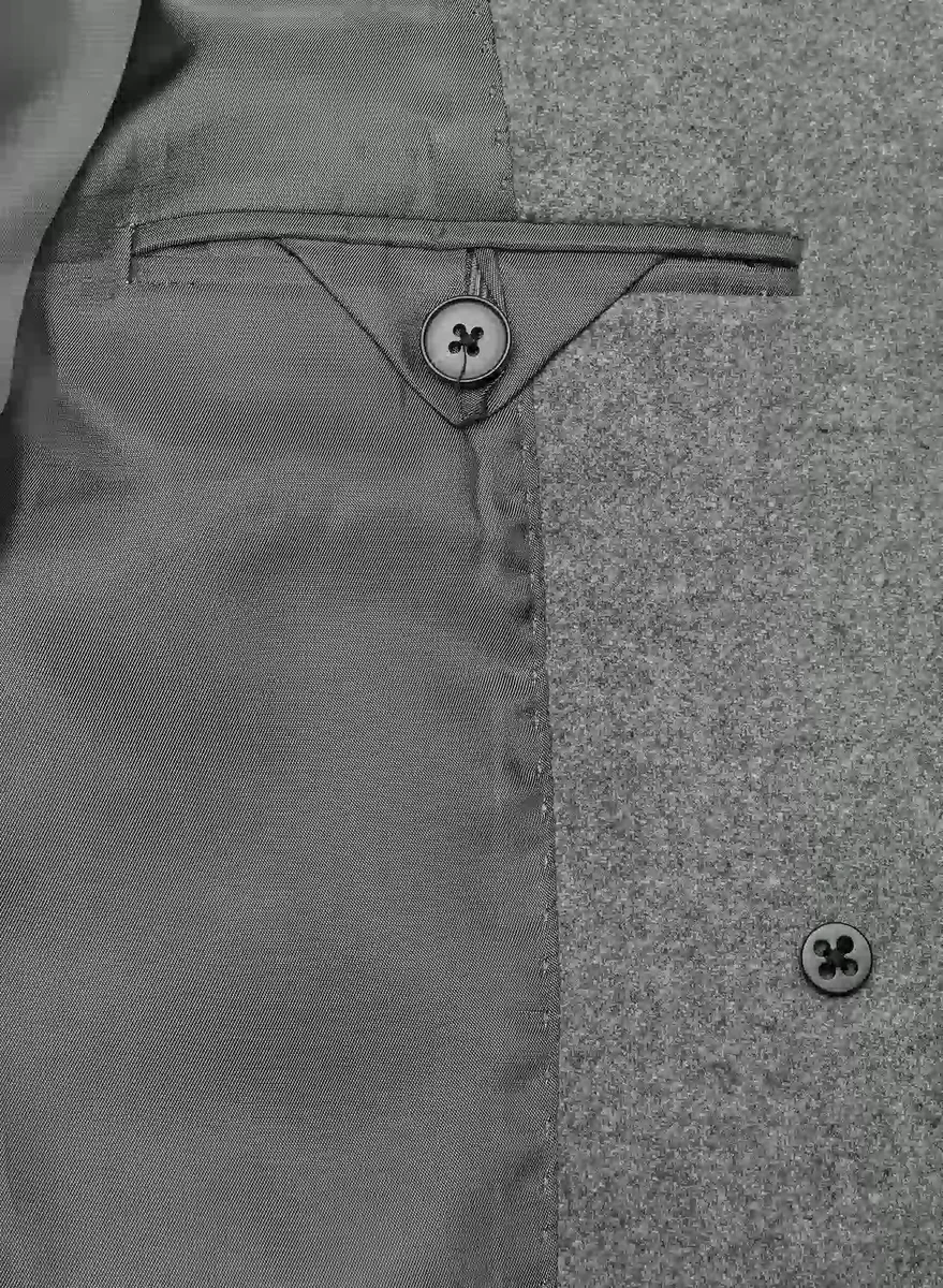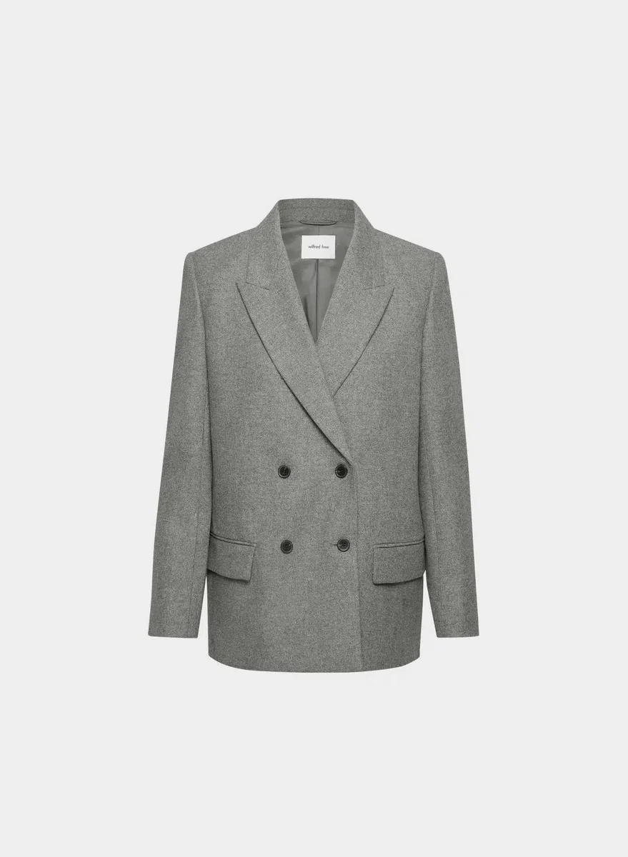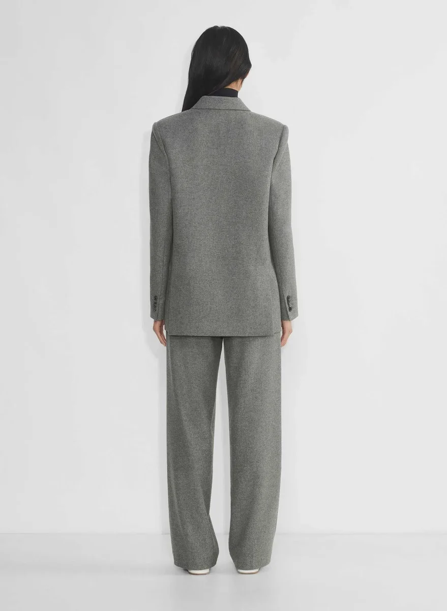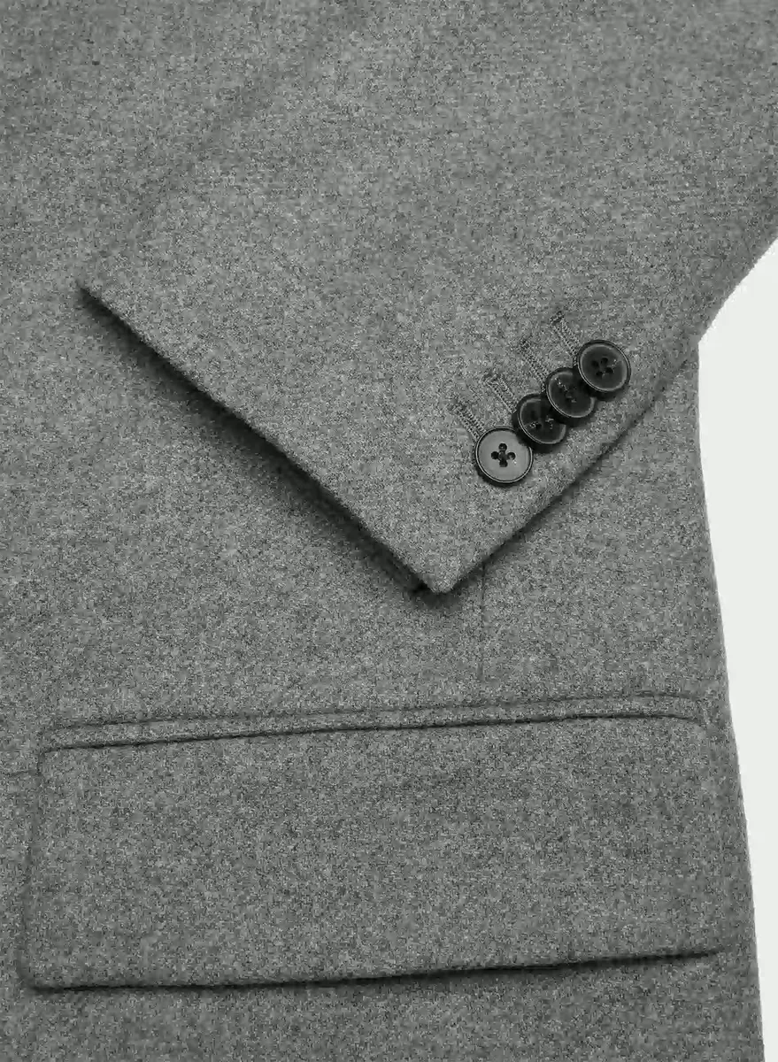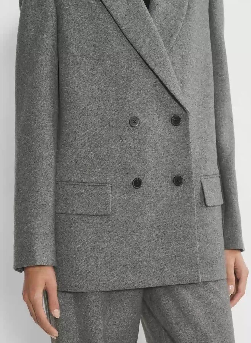 Choose your own destinyThis is a classic double-breasted blazer with a peaked lapel, welt pockets and shoulder pads. It’s cut from soft flannel twill made with recycled wool. This fabric is sourced from a premier Italian mill.