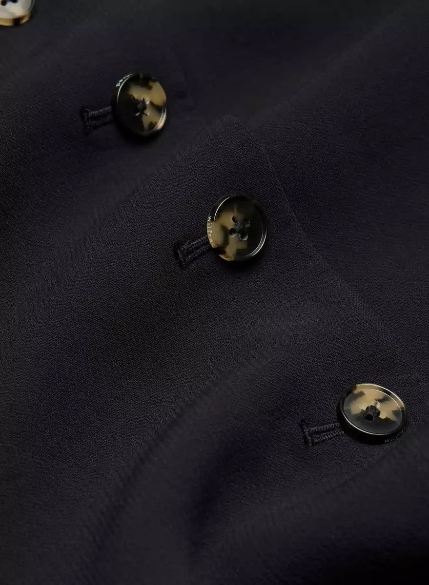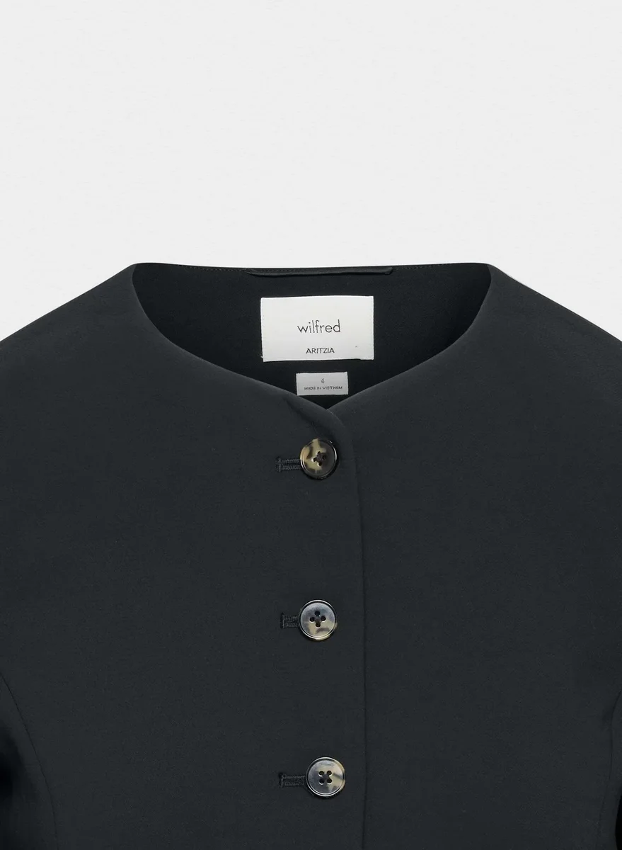This is a lined button-up blazer with princess seams for shaping. It’s expertly tailored with Crepette™ — our one-of-a-kind Japanese crepe fabric beloved for its subtle texture, breezy drape and the fact that it basically never wrinkles.