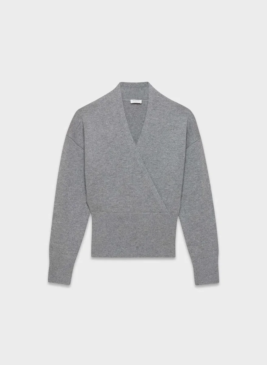 That’s a wrapThis is a fully fashioned wrap sweater with a classic fit and dropped shoulders. It’s knit with lightweight, 100% extra-fine merino wool yarn that’s naturally warm and luxuriously soft. This garment is constructed using a Jersey stitch for a soft drape and a smooth, flat feel.