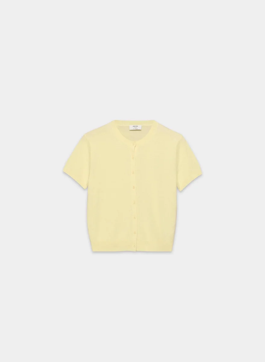 This is a shortsleeve crewneck sweater with a relaxed fit. It’s made with Aritzia’s Bare Cashmere — lightweight, all-season 100% cashmere yarn coveted for its signature softness and warmth. The finest available. This cashmere is verified to The Good Cashmere Standard®. This garment is constructed with a Jersey stitch for a soft drape and a smooth, flat feel.