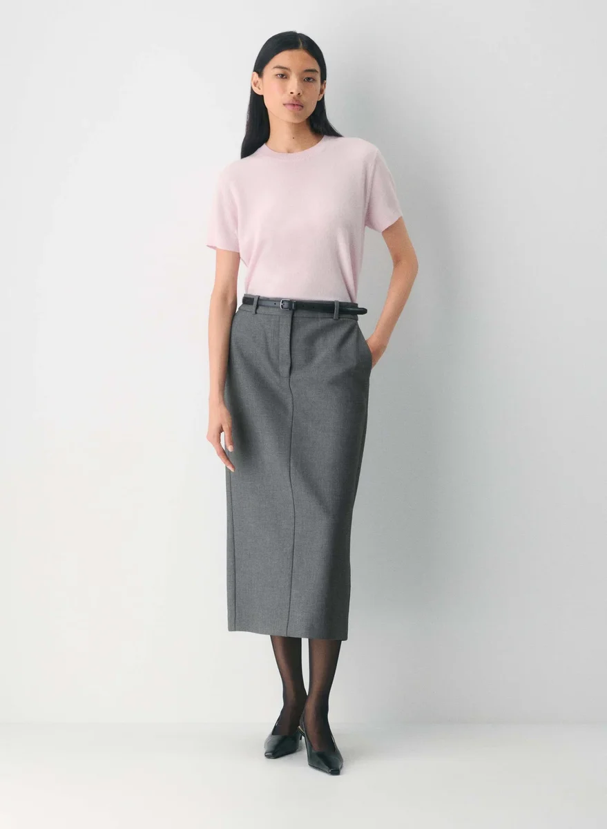 This is a fully fashioned shortsleeve sweater with a crew neckline and a classic fit. It’s made made with Aritzia’s Bare Cashmere — lightweight, all-season 100% cashmere yarn coveted for its signature softness and warmth. The finest available. This cashmere is verified to The Good Cashmere Standard®. This version is constructed using a Jersey stitch for a soft drape and a smooth, flat feel.