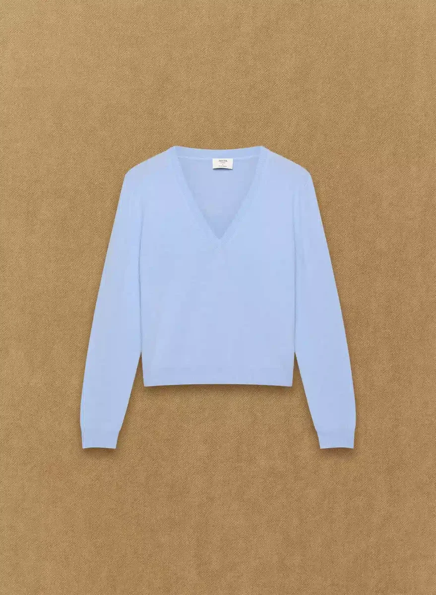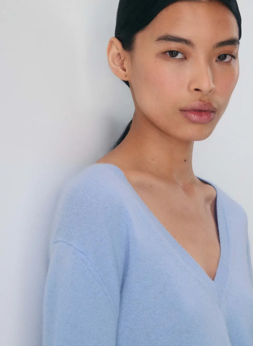 This is a fully fashioned V-neck sweater with a classic fit. It’s made made with Aritzia’s Bare Cashmere — lightweight, all-season 100% cashmere yarn coveted for its signature softness and warmth. The finest available. This cashmere is verified to The Good Cashmere Standard®. This version is constructed using a Jersey stitch for a soft drape and a smooth, flat feel.