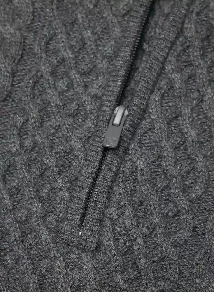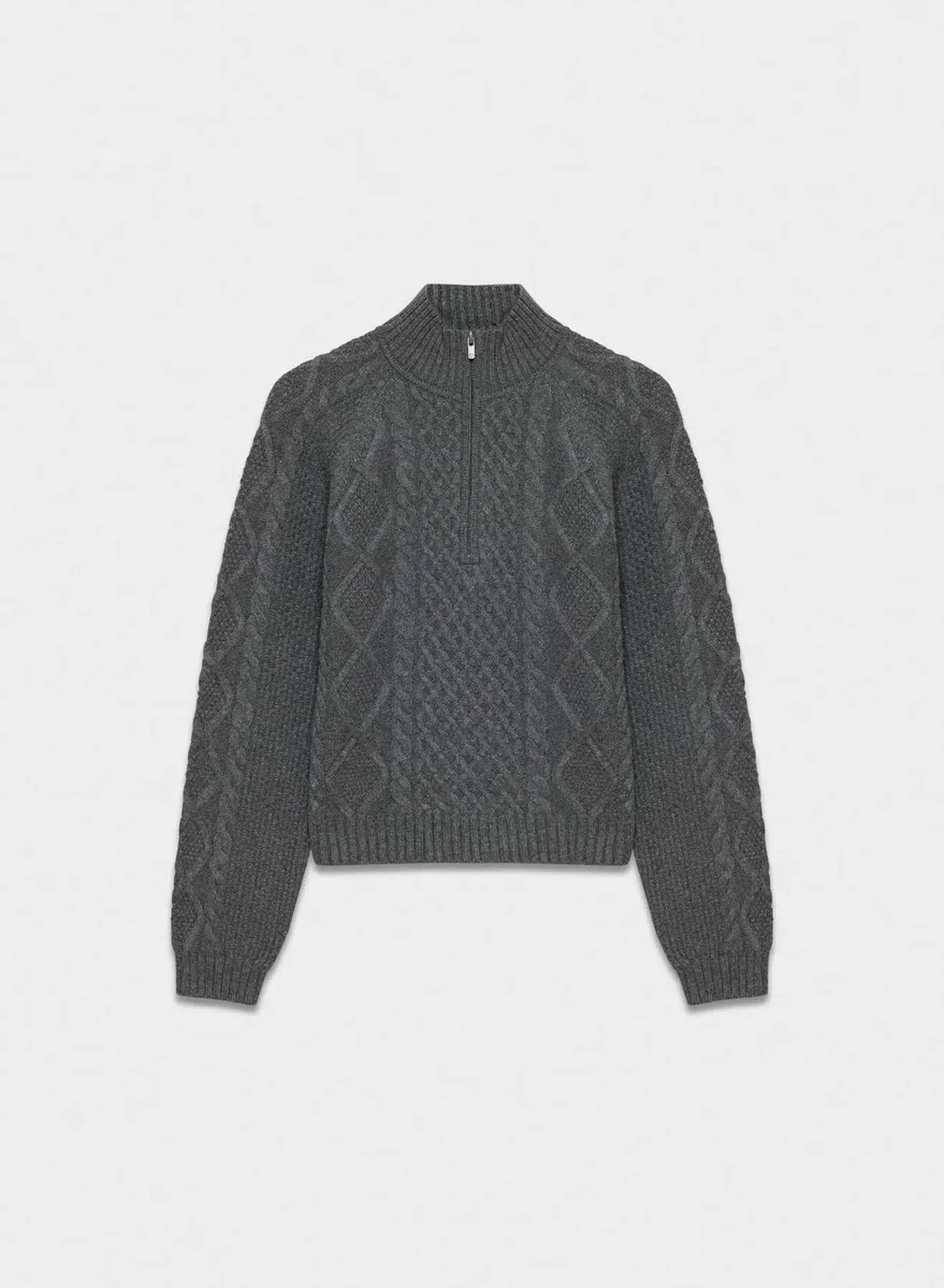 This is a mockneck 1/4-zip sweater with raglan sleeves, ribbed finishing and fully fashioned construction. It’s made with Infiniti Wool — responsibly sourced extra-fine merino wool, recycled nylon and organic cotton yarn that’s naturally warm with an infinitely wearable, soft feel. This version is constructed using our Major Cable stitch in a custom design for a bold, three-dimensional look and texture.