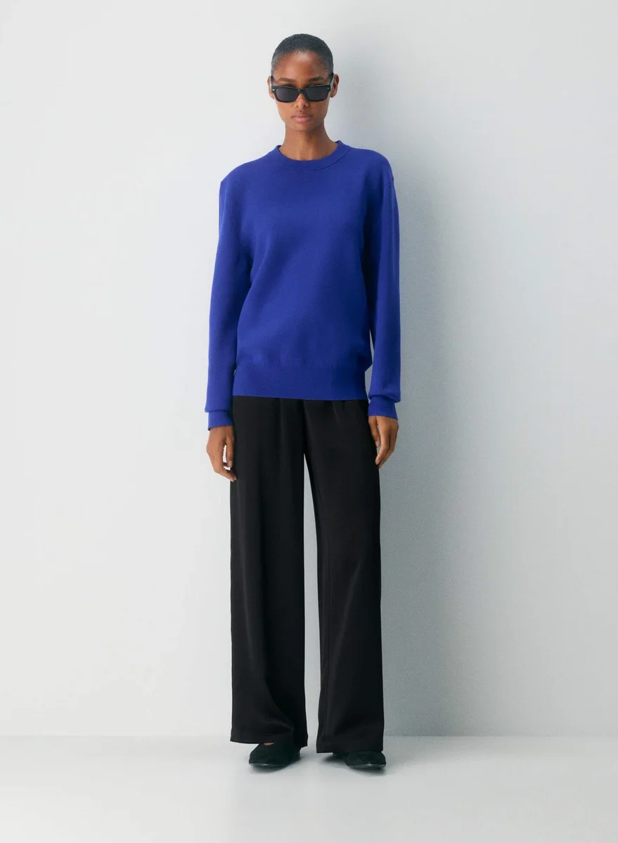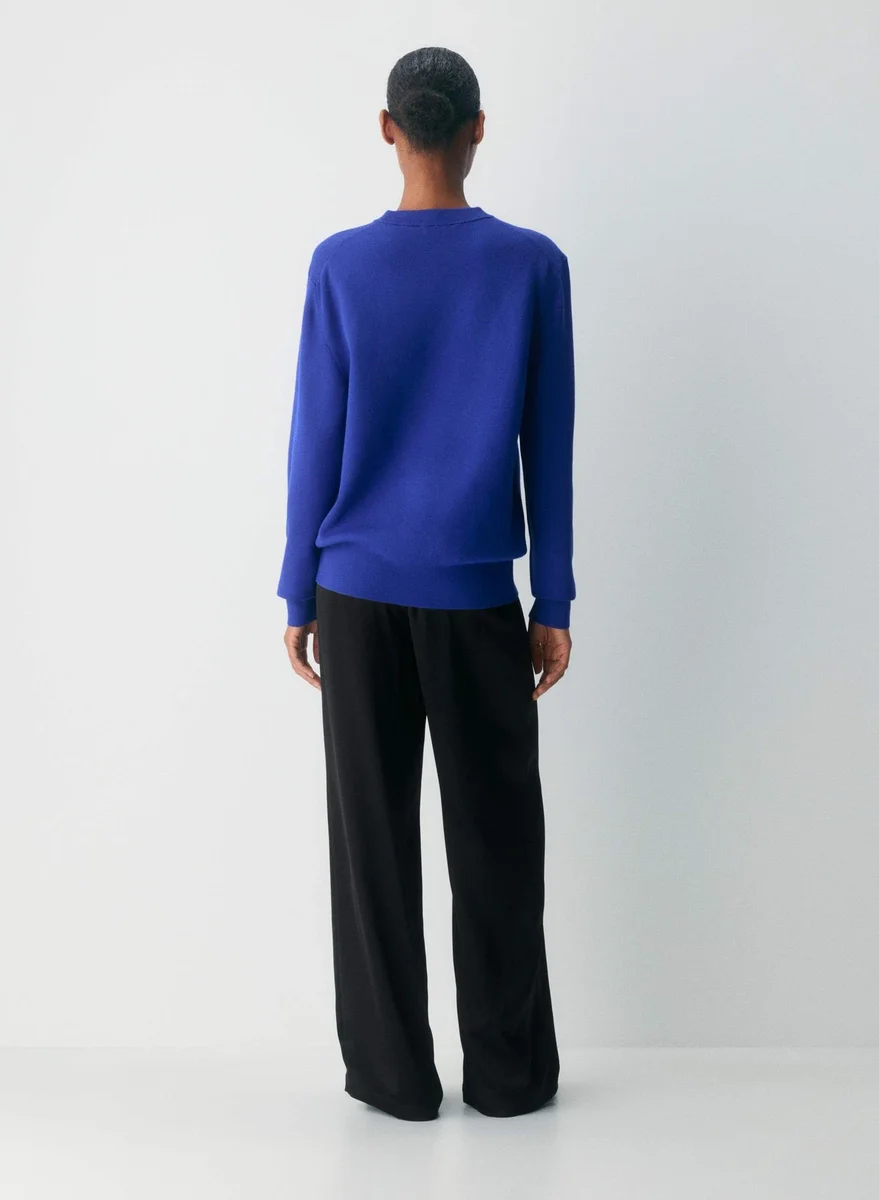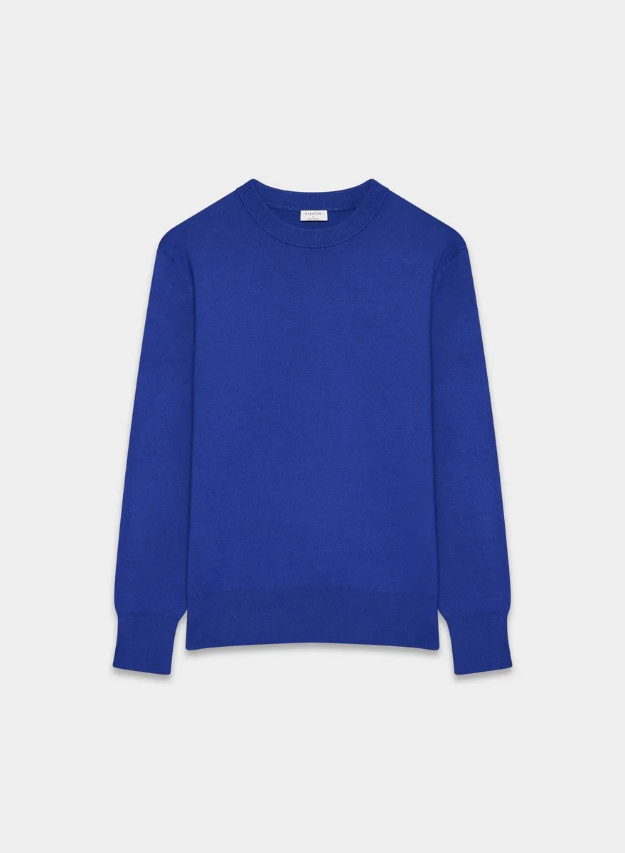 This is a crewneck sweater with ribbed collar, cuffs and hem. It’s knit with Wonder Yarn — the lightweight yarn that lives up to its name. This fabric offers the peachy softness of wool, without the wool. It’s made with LENZING™ ECOVERO™ Viscose. This garment is constructed using a Double Jersey stitch for structure and a flat, dense feel.