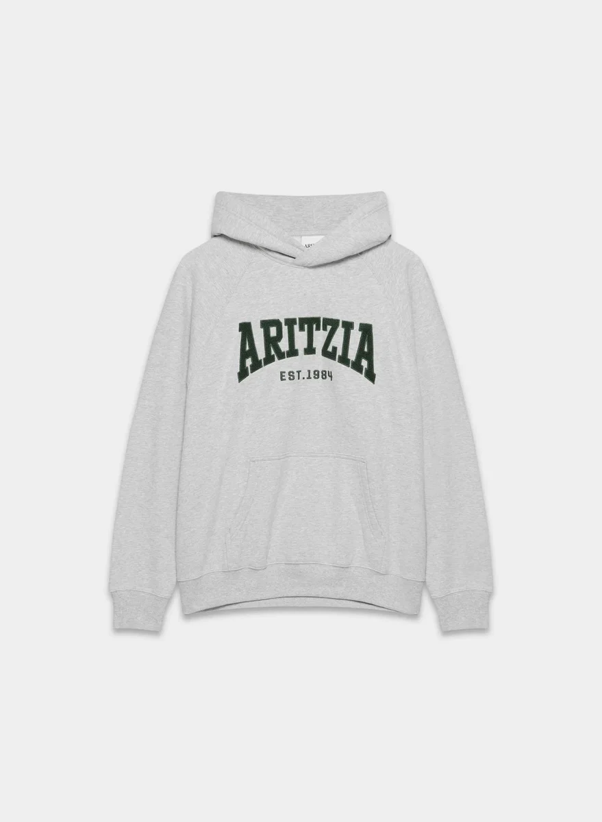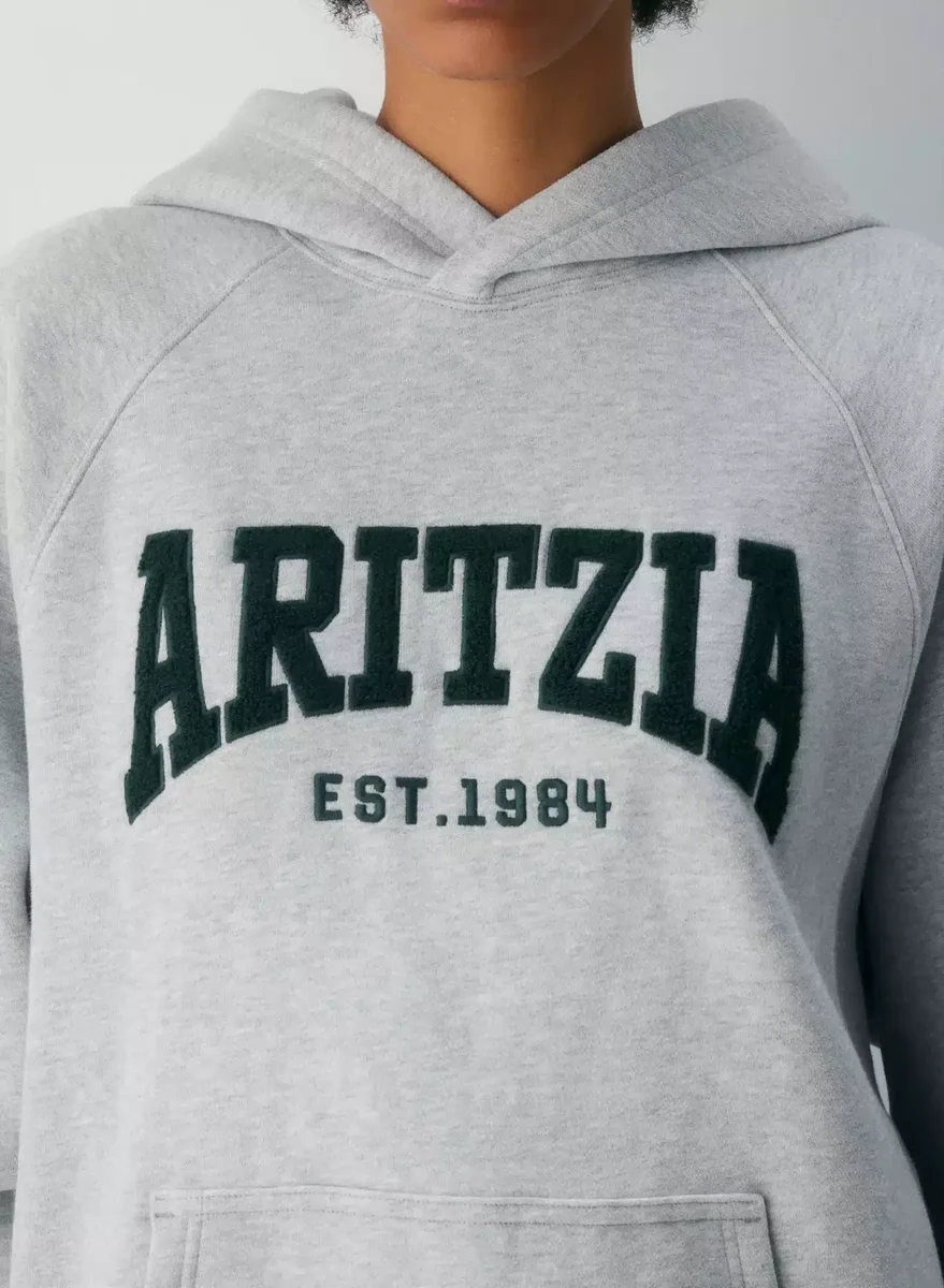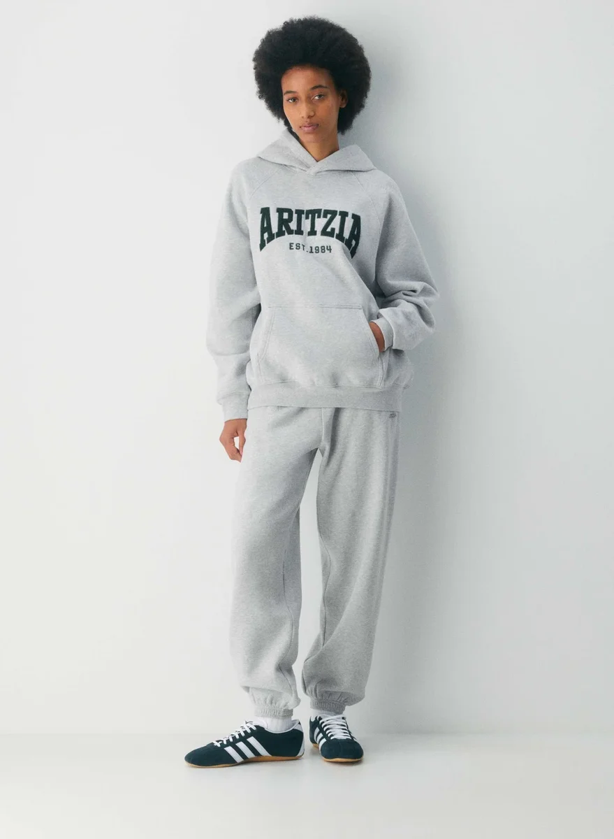 The iconic oversized hoodie — but kind of differentBecause this one has a raglan sleeve, for that sort-of-sporty look. It’s also finished with a kanga pocket and ribbed trim. It’s made with Aritzia’s Cozy Sweatfleece — premium midweight fleece famous for its soft-brushed back, sueded face and cloud-nine plush feel. The best kind of cozy. This version features an exclusive, custom-designed Aritzia logo graphic.