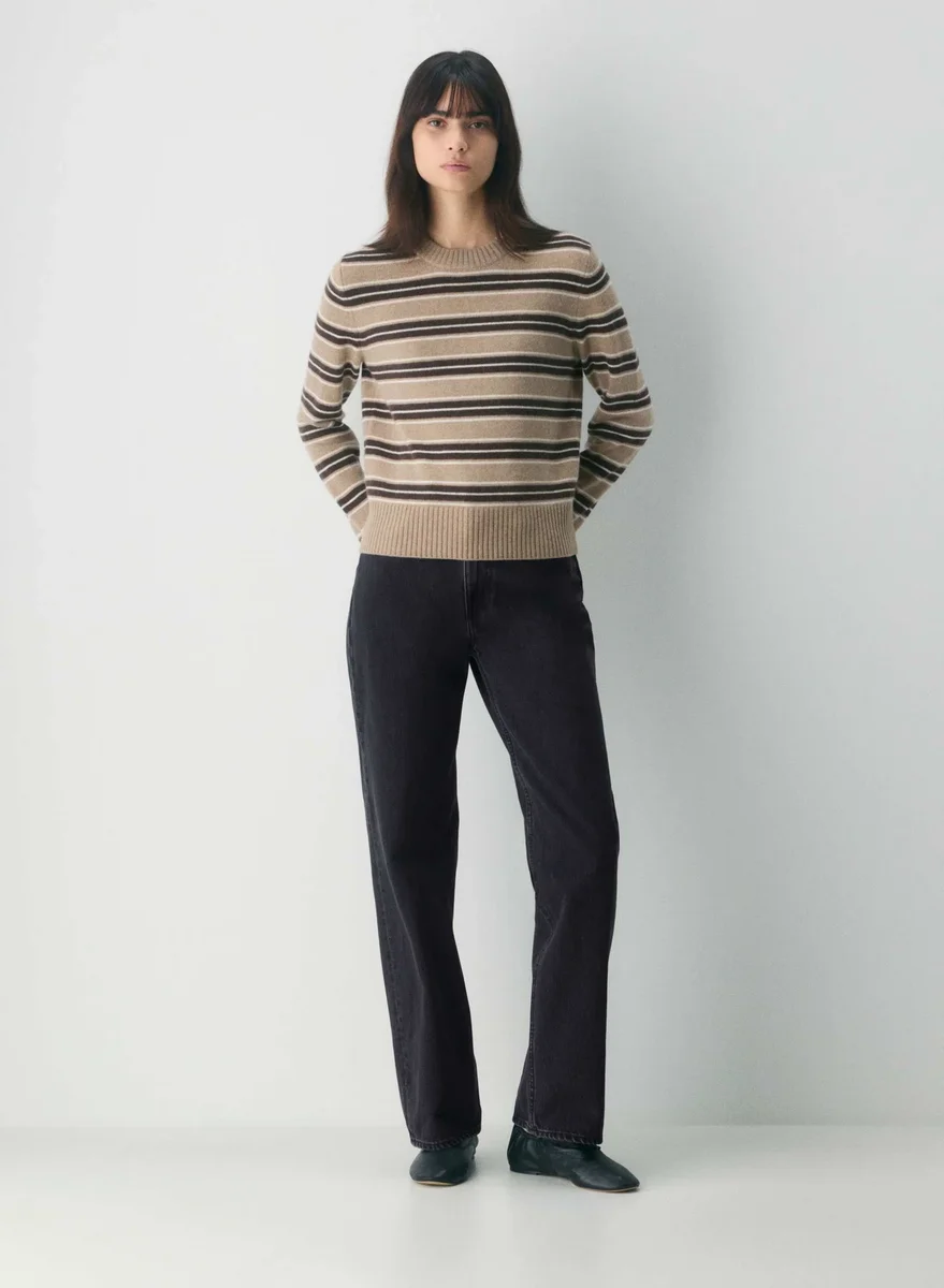 This is a crewneck sweater with a classic fit. It’s knit with Aritzia’s Essential Cashmere — perfectly balanced midweight 100% cashmere yarn coveted for its signature softness and warmth. The finest available. This cashmere is verified to The Good Cashmere Standard®. This garment is constructed with a Jersey stitch for a soft drape and a smooth, flat feel.