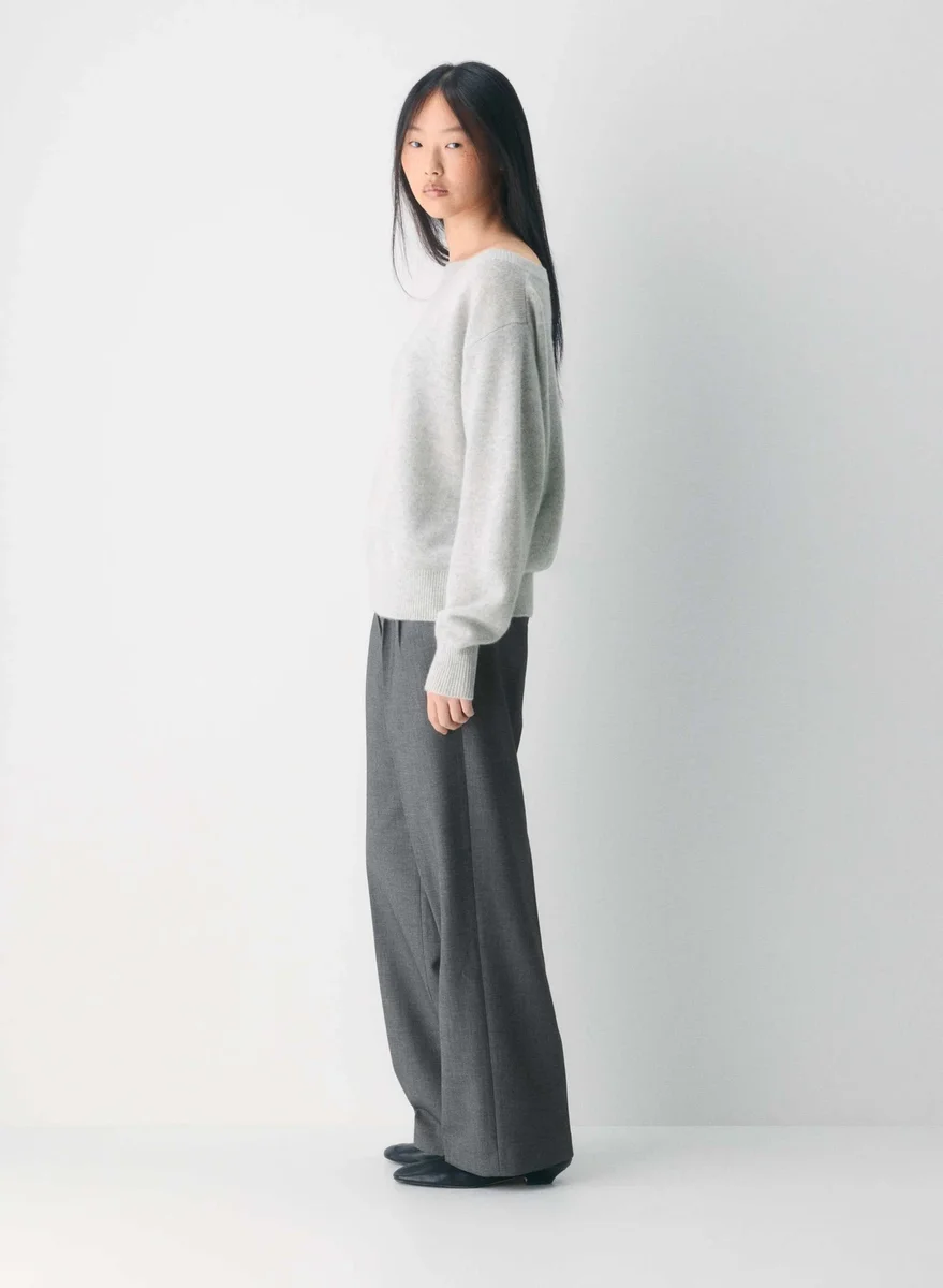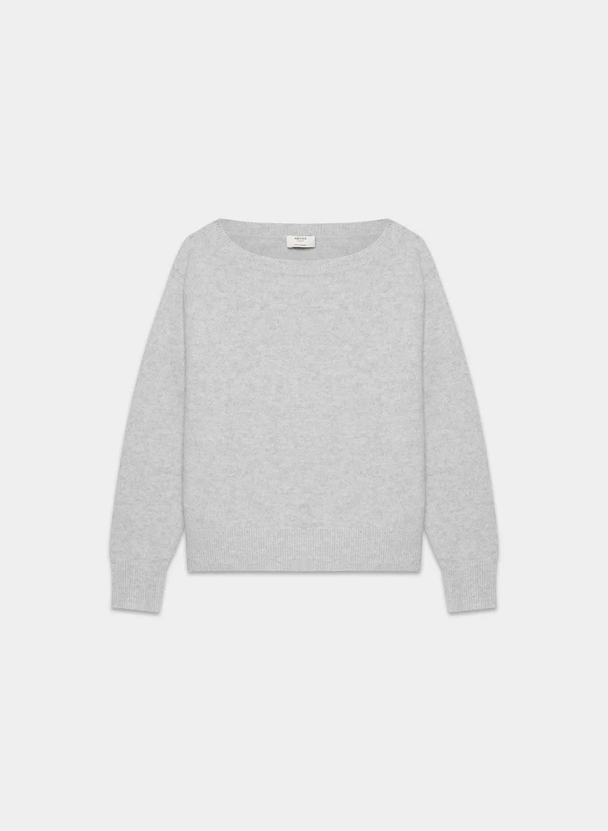 This is a boatneck sweater with a relaxed fit. It’s knit with Aritzia’s Essential Cashmere — perfectly balanced midweight 100% cashmere yarn coveted for its signature softness and warmth. The finest available. This cashmere is verified to The Good Cashmere Standard®. This garment is constructed with a Jersey stitch for a soft drape and a smooth, flat feel.