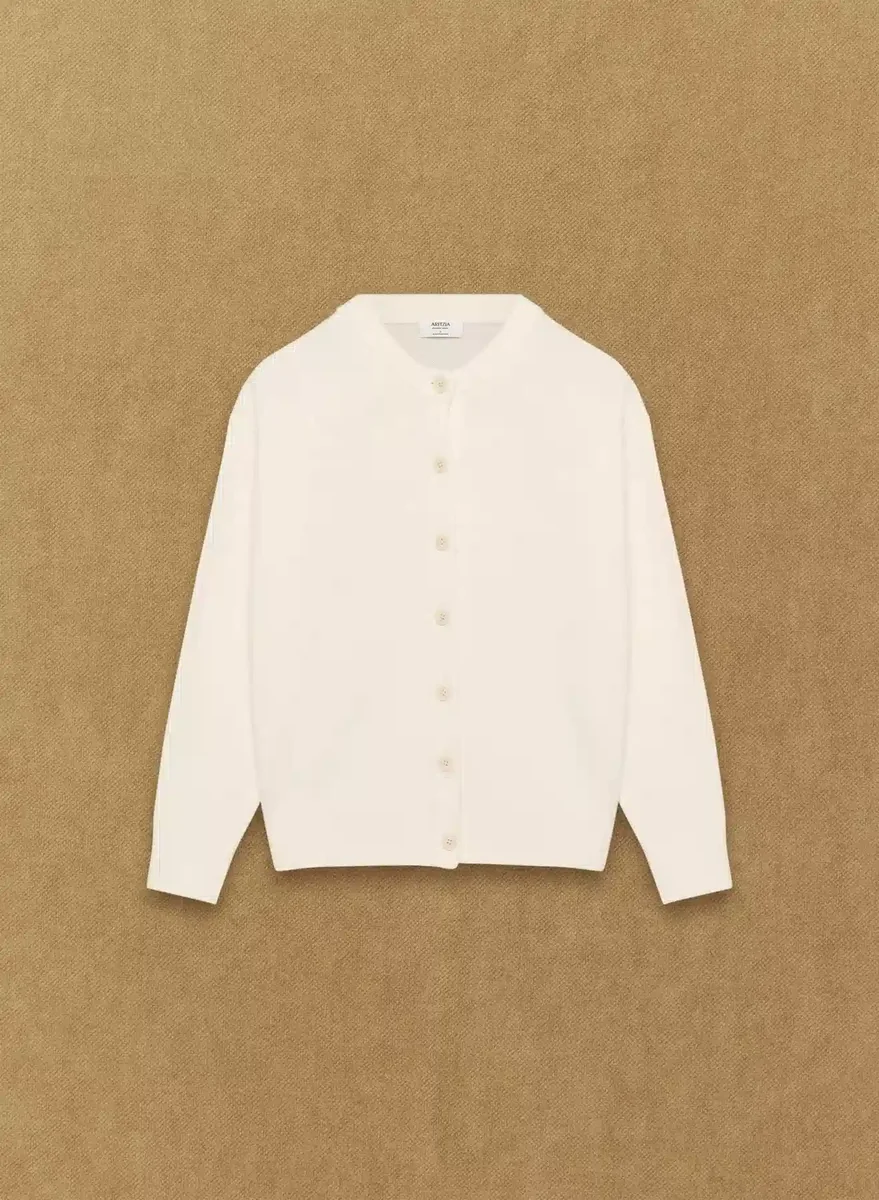 Midweight 100% extra-fine merino wool crewneck cardigan